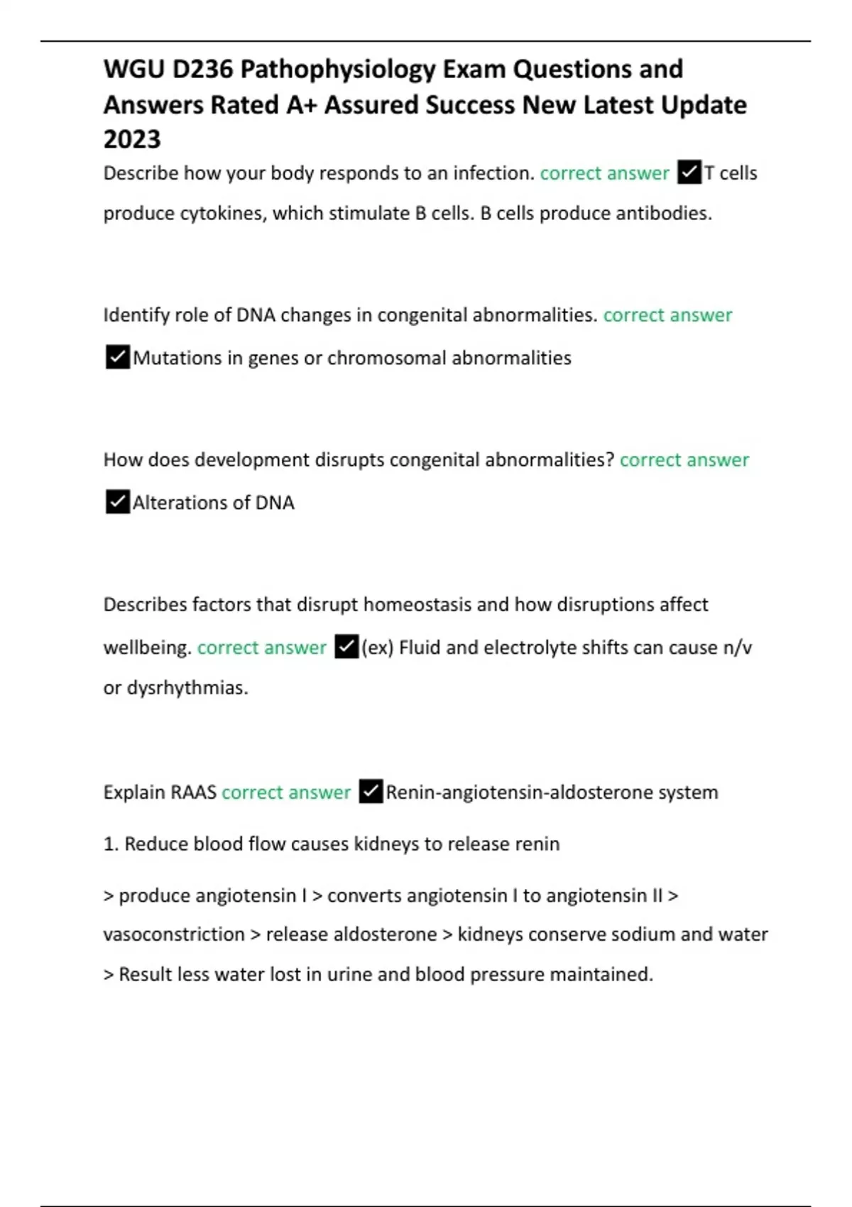 WGU D236 Pathophysiology Exam Questions and Answers Rated A+ Assured Success New Latest Update 2023 Questions and Answers Rated A+ Assured Success New Latest Update 2023