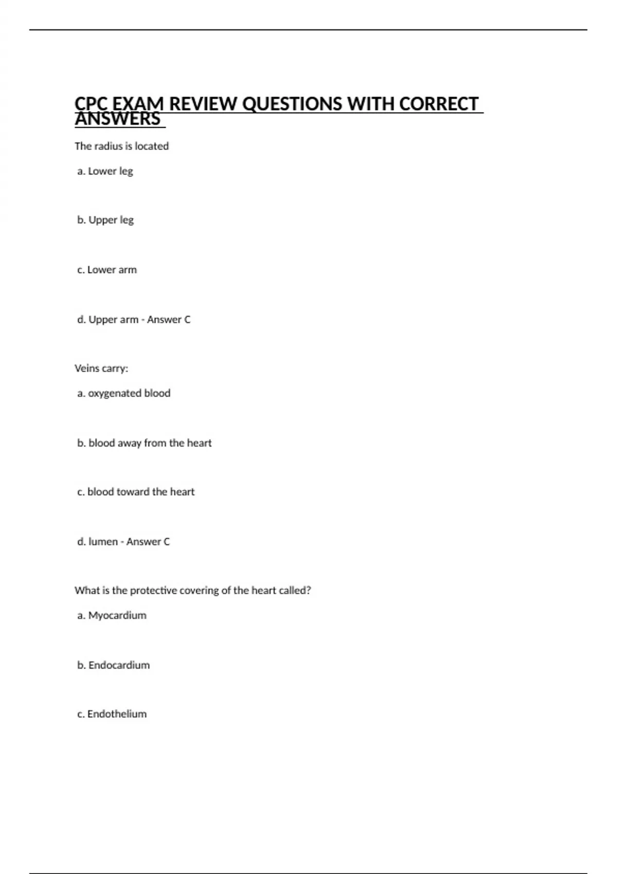 CPC EXAM REVIEW QUESTIONS WITH CORRECT ANSWERS
