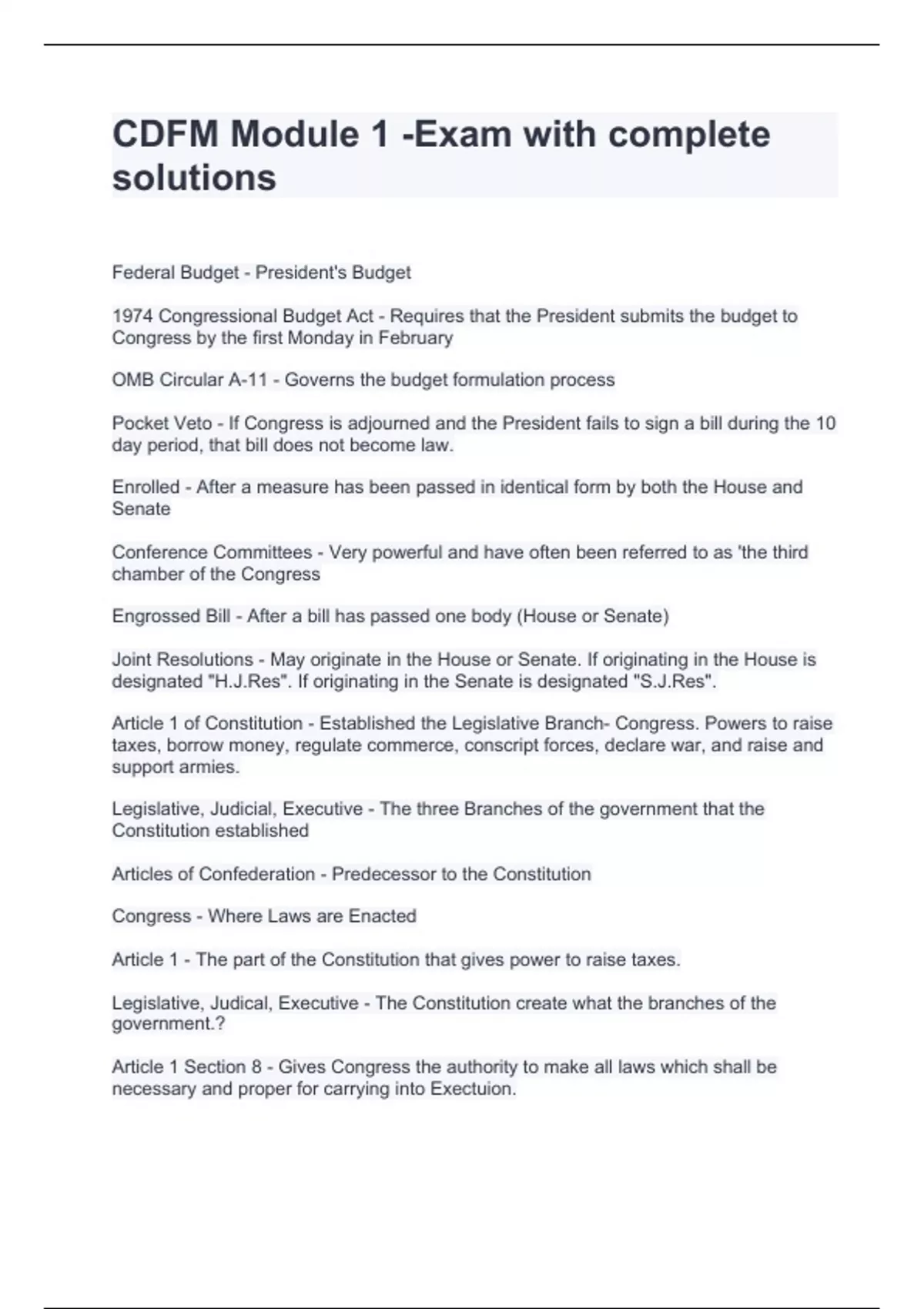 cdfm module 1 exam with complete solutions