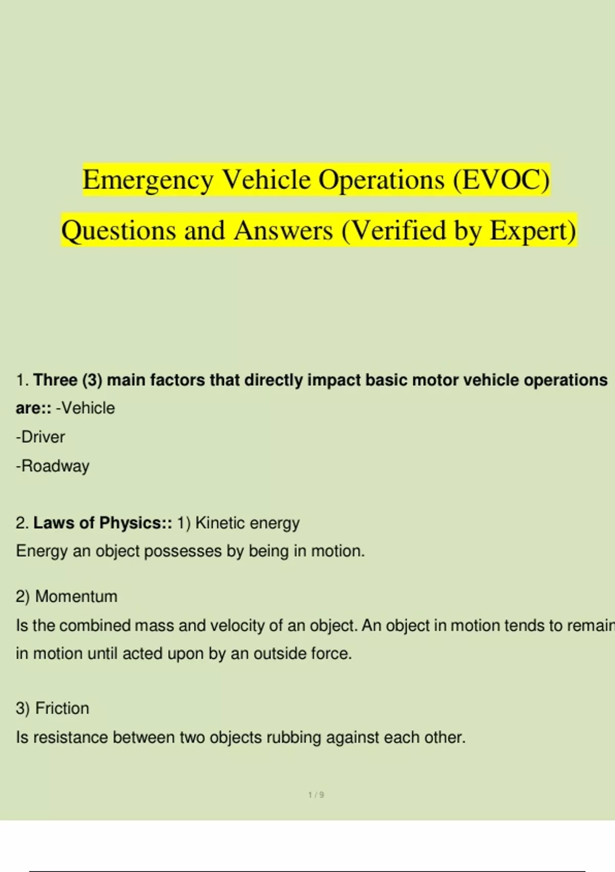 Emergency Vehicle Operations (EVOC) Exam Study Guide Questions and Answers () (Verified by Expert)