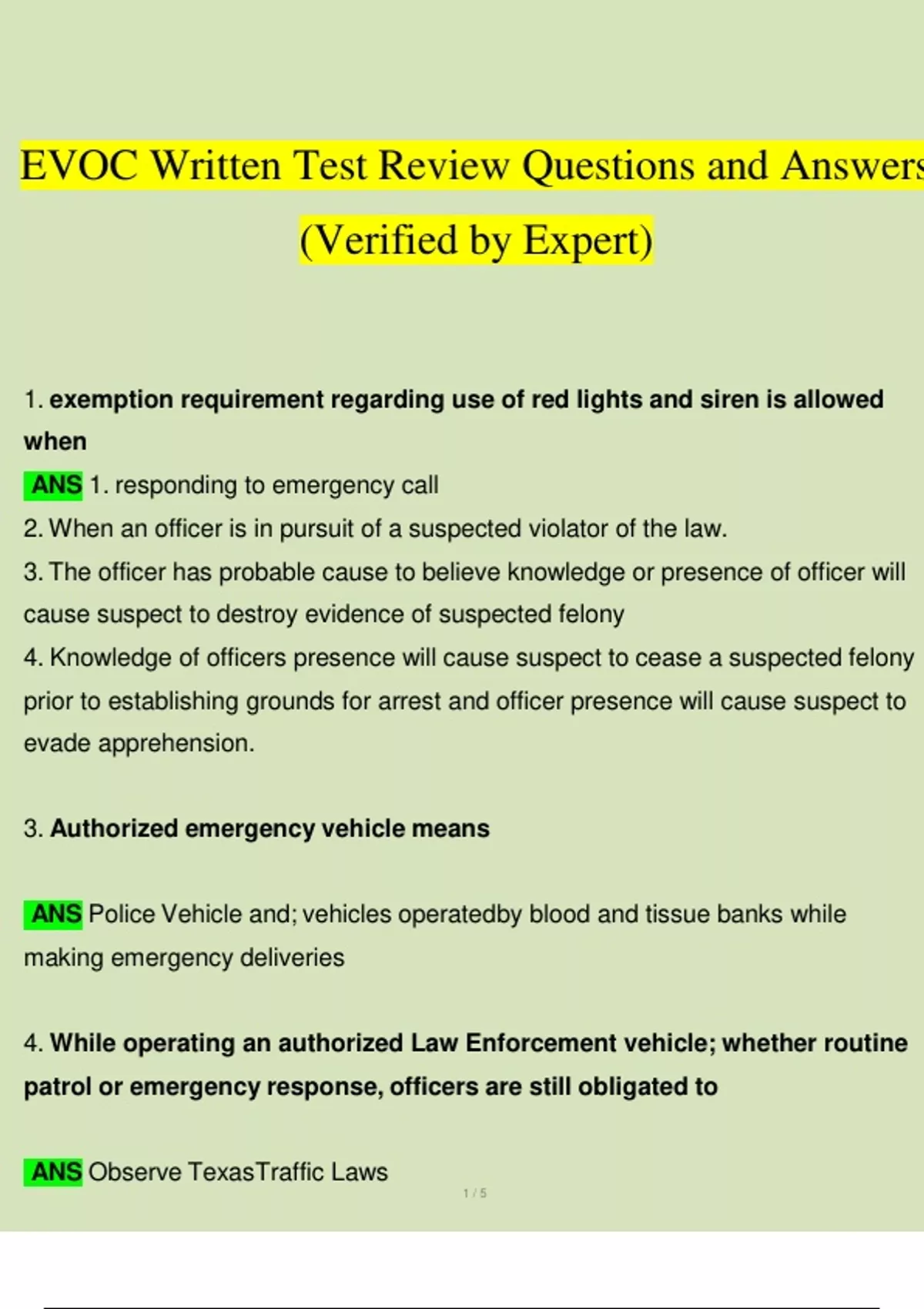 EVOC Written Test Review Questions and Answers () (Verified by Expert)