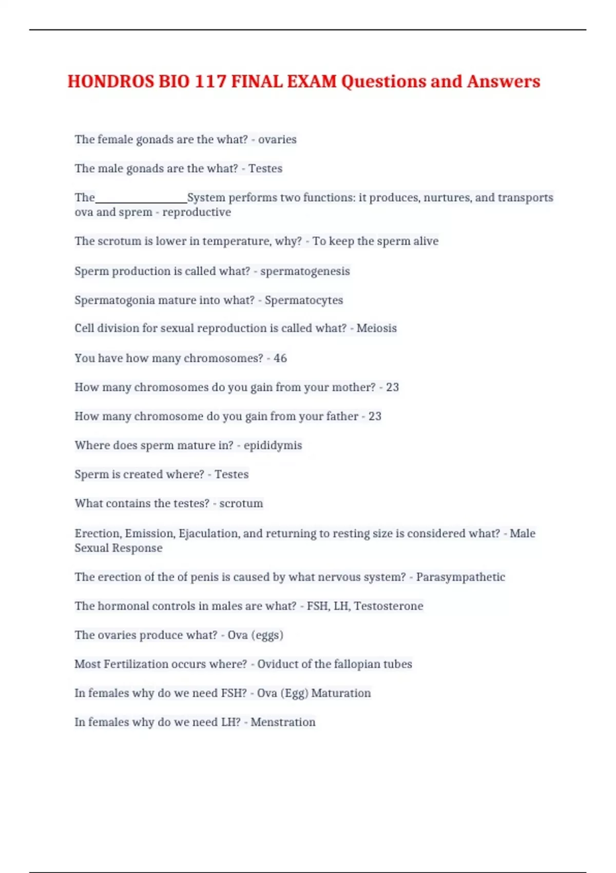 HONDROS BIO 117 FINAL EXAM Questions and Answers