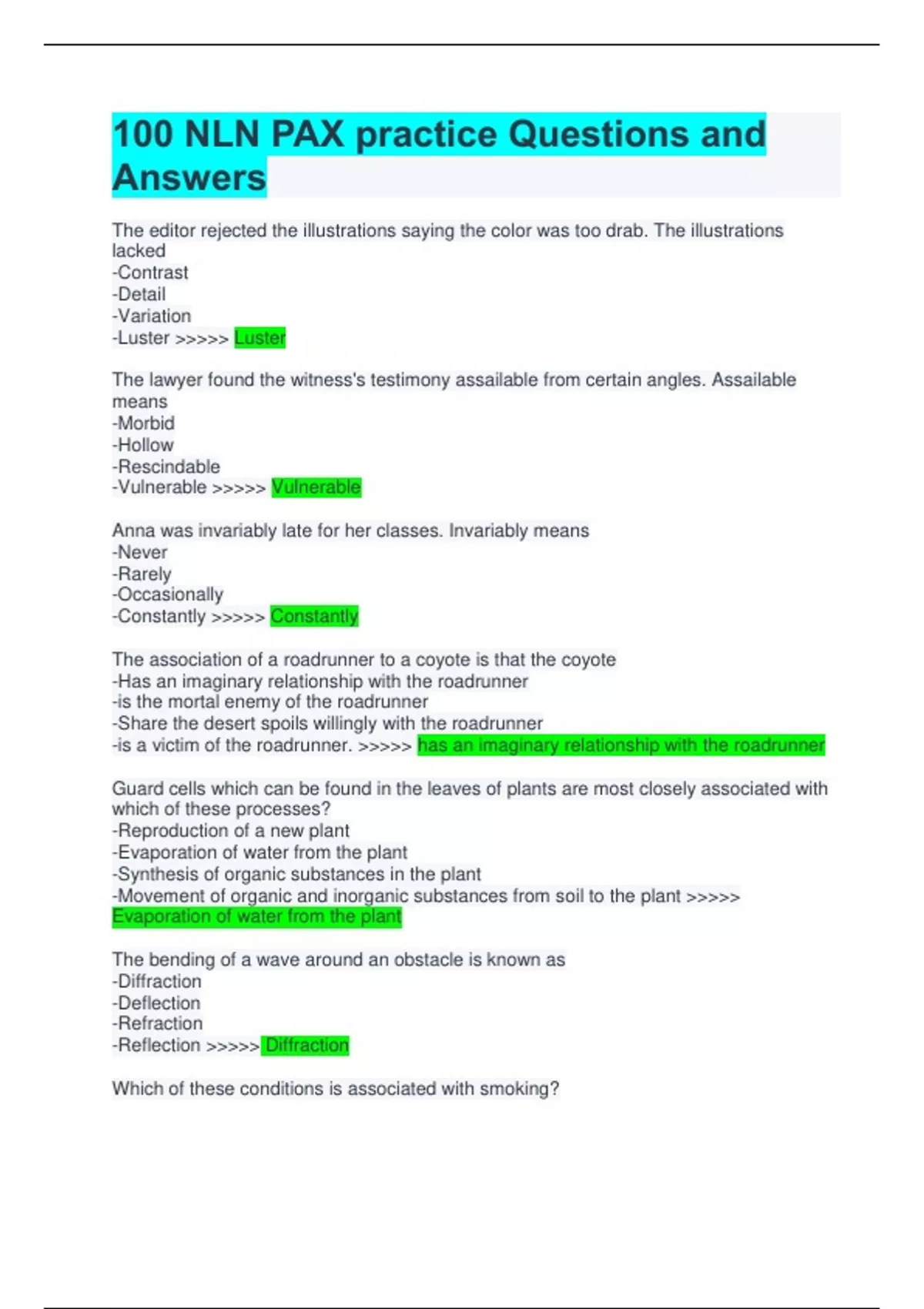100 nln pax practice questions and answers