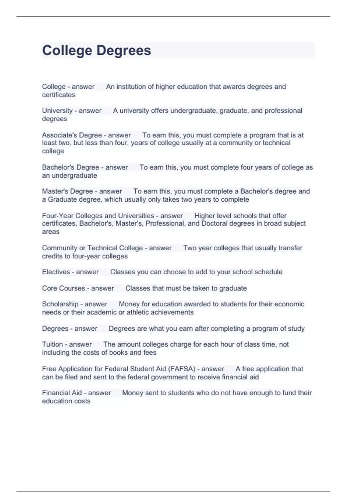College Degrees Questions with correct Answers Scored 30 out of 30