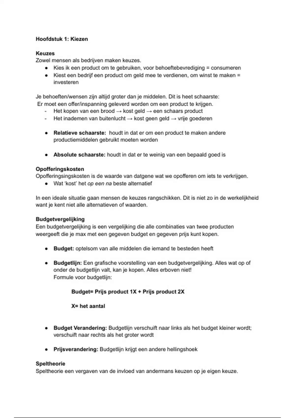 Je behoeften/wensen zijn altijd groter dan je middelen. Dit is heet schaarste: