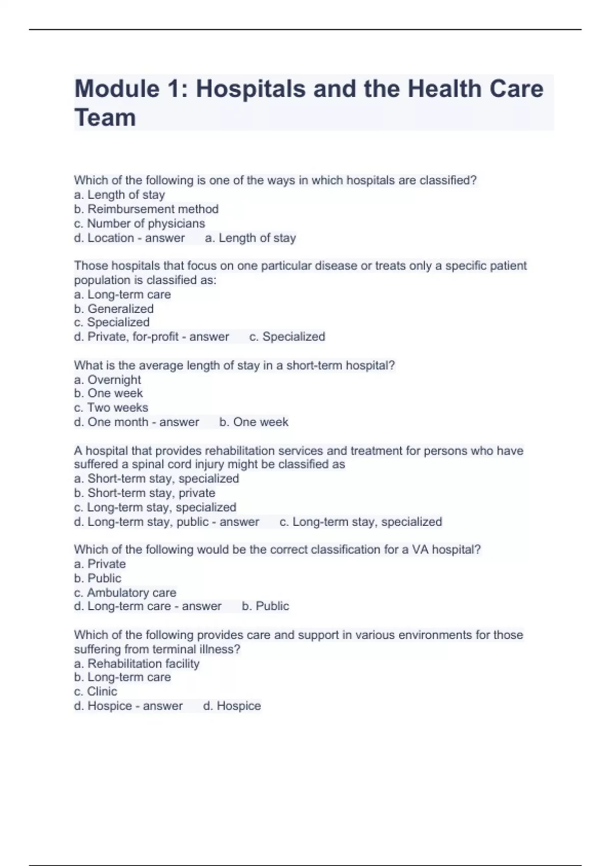 HOSPITALS TEST COMPILATION BUNDLE GRADED A+ 2023