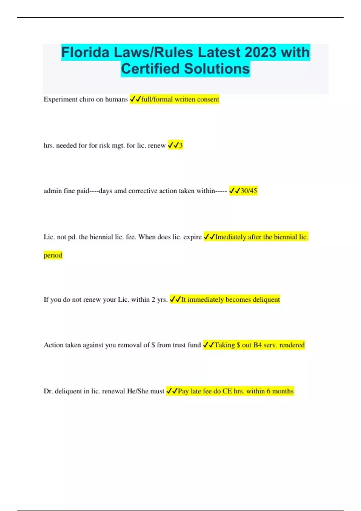 Florida Laws/Rules Latest 2023 with Certified Solutions