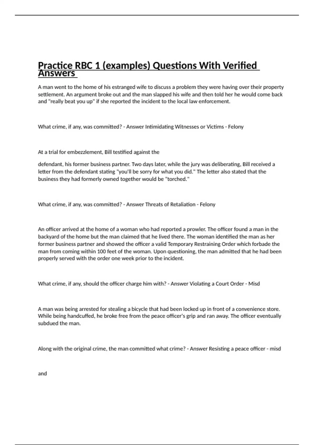 practice rbc 1 examples questions with verified