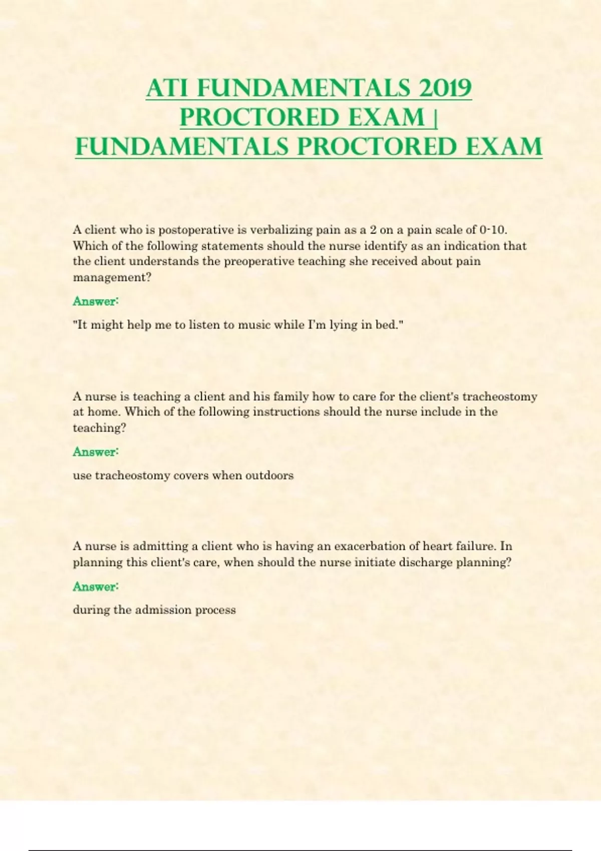 ATI Fundamentals 2019 Proctored Exam | Fundamentals Proctored Exam