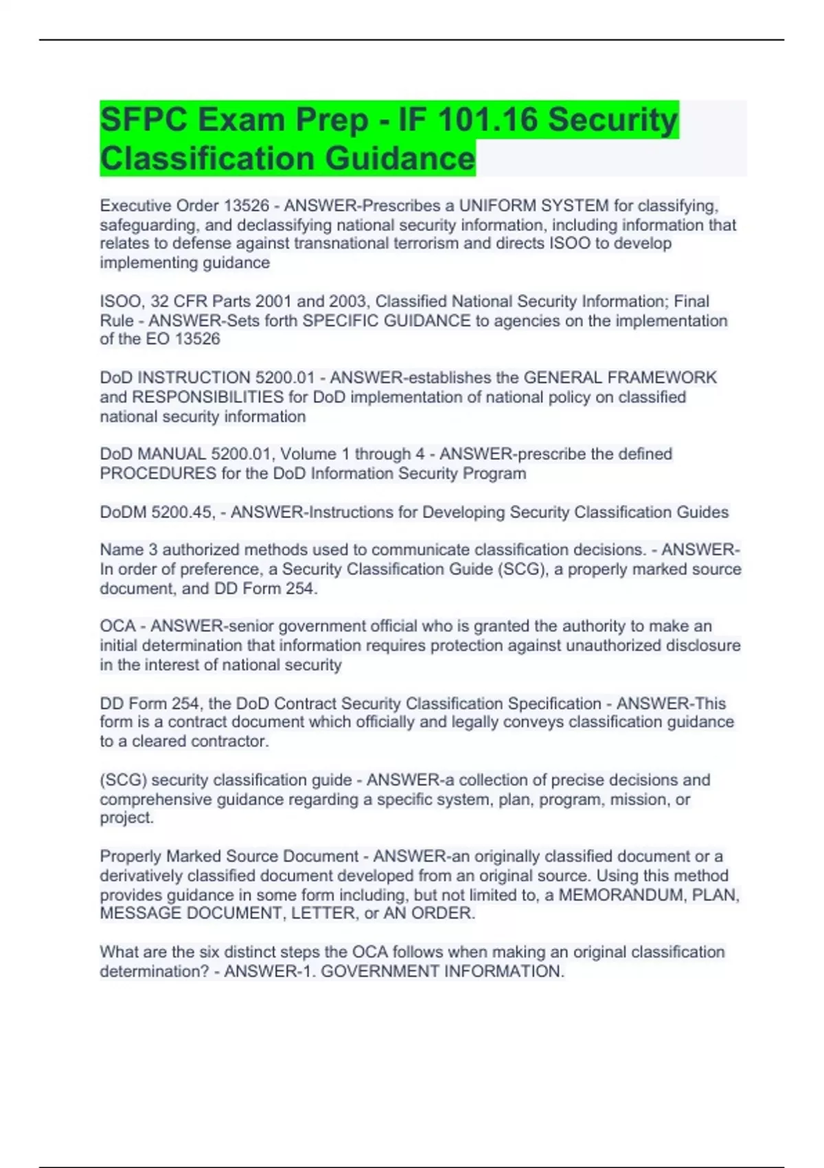 SFPC Exam Prep - IF 101.16 Security Classification Guidance