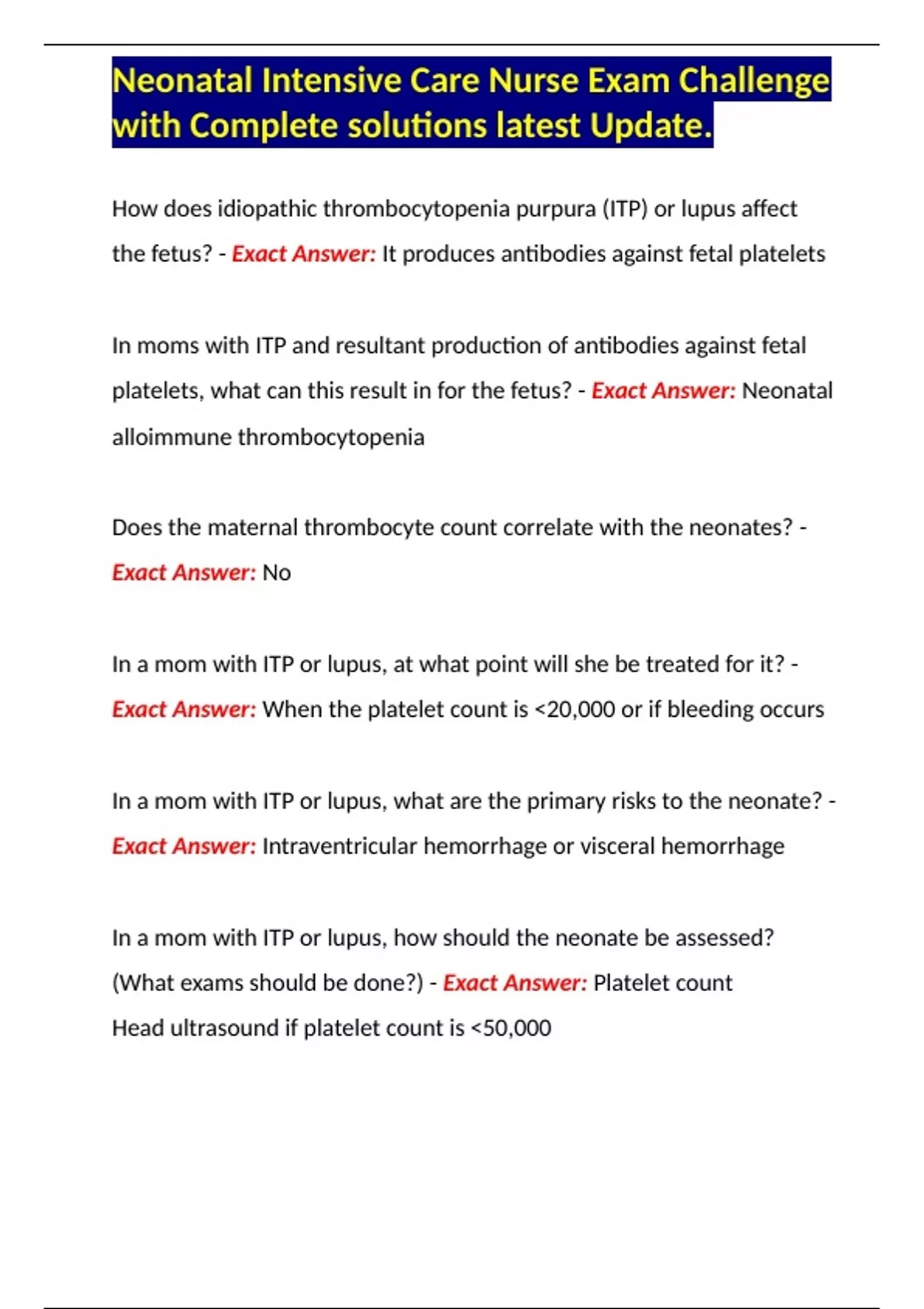 Neonatal Intensive Care Nurse Exam Challenge with Complete solutions latest Update.