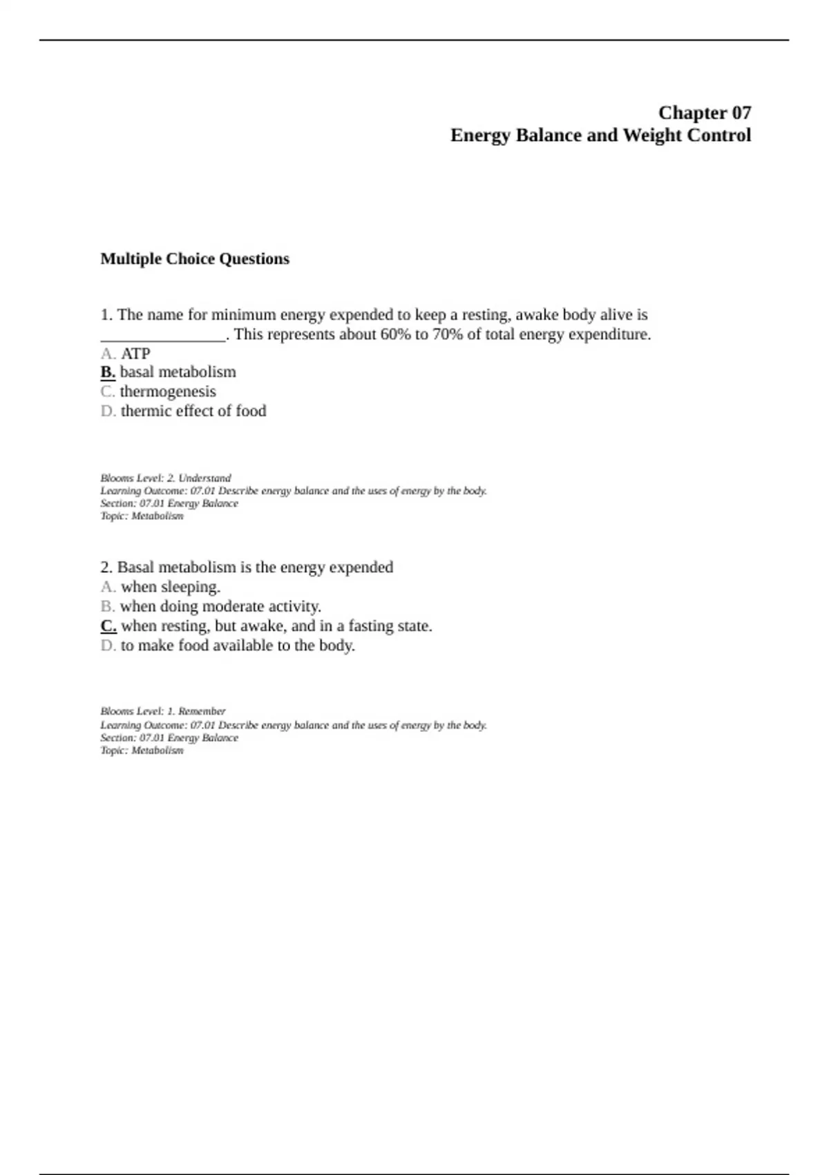 Updated Test Bank For Wardlaw's Contemporary Nutrition, A Functional Approach, 6th Edition By Anne Smith All chapters 2023