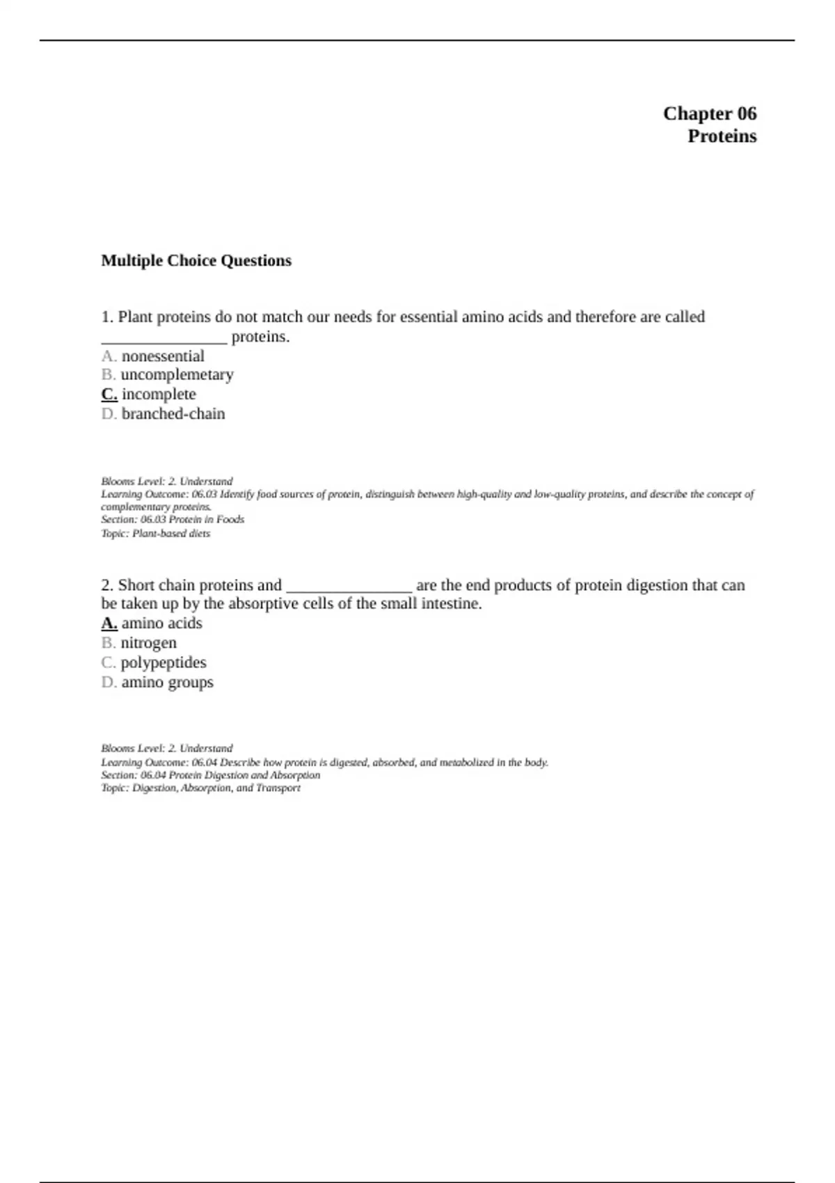 Exam of 29 pages for the course Nutrition at University Of California - Los Angeles (Chapter 6 Proteins)