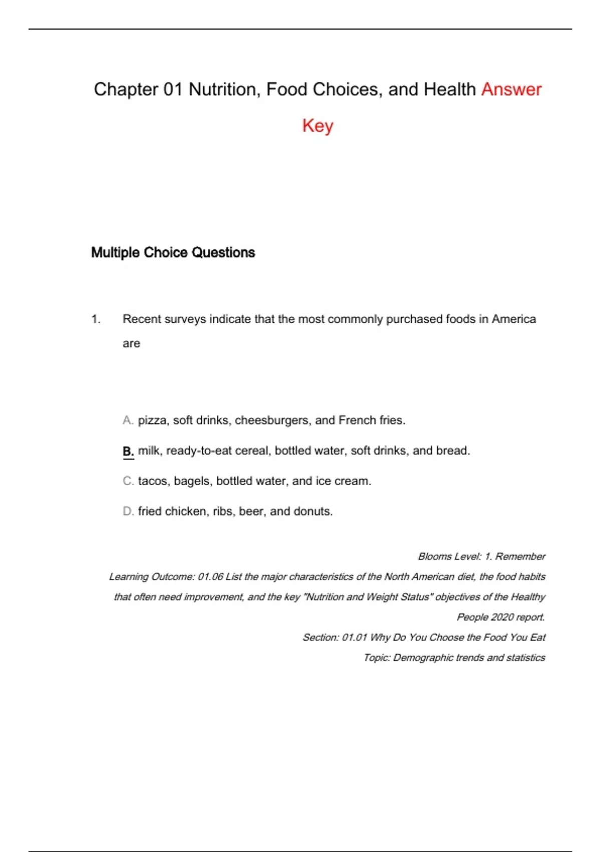 Chapter 1 Nutrition, Food Choices, and Health