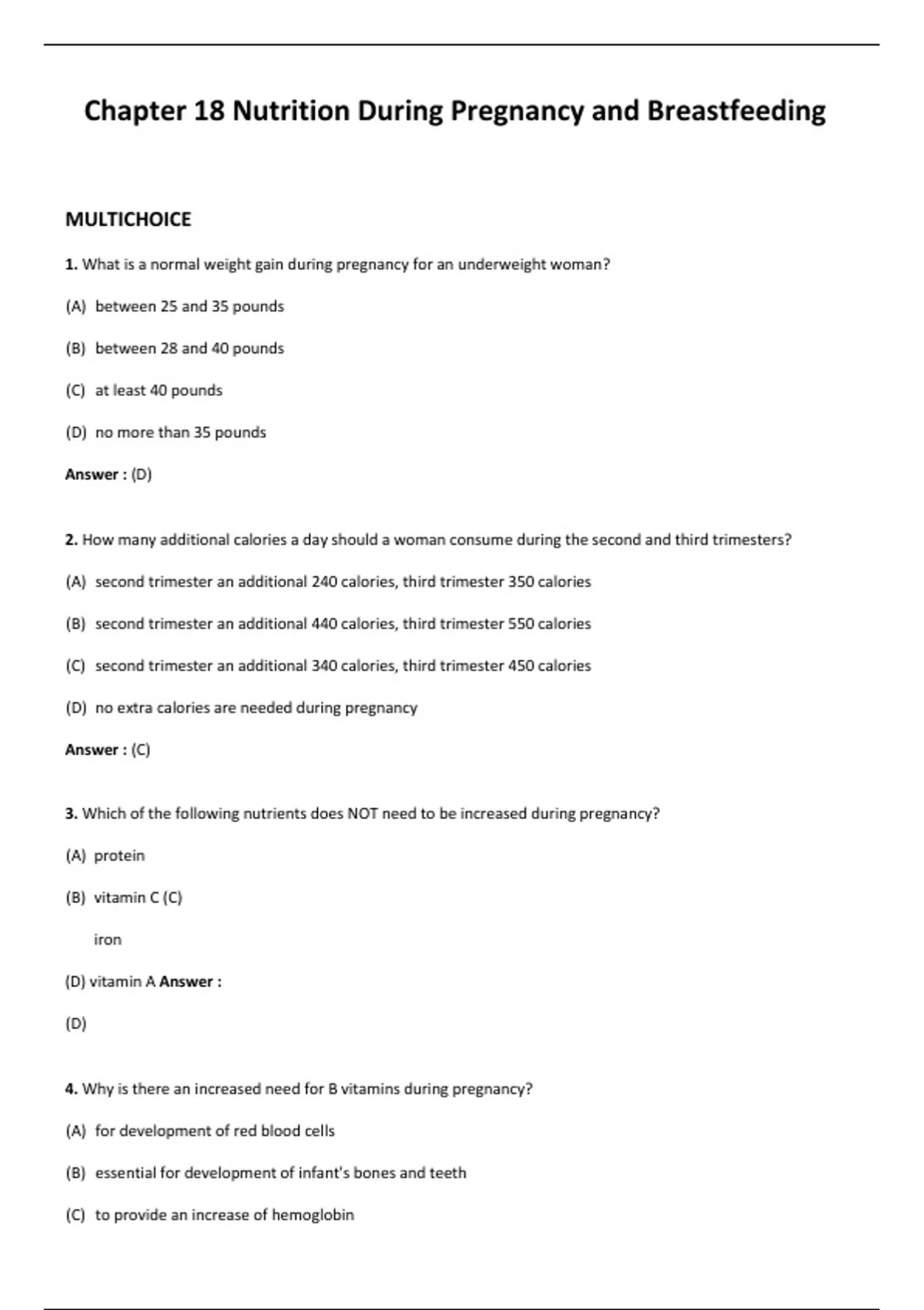 Chapter 18 Nutrition During Pregnancy and Breastfeeding