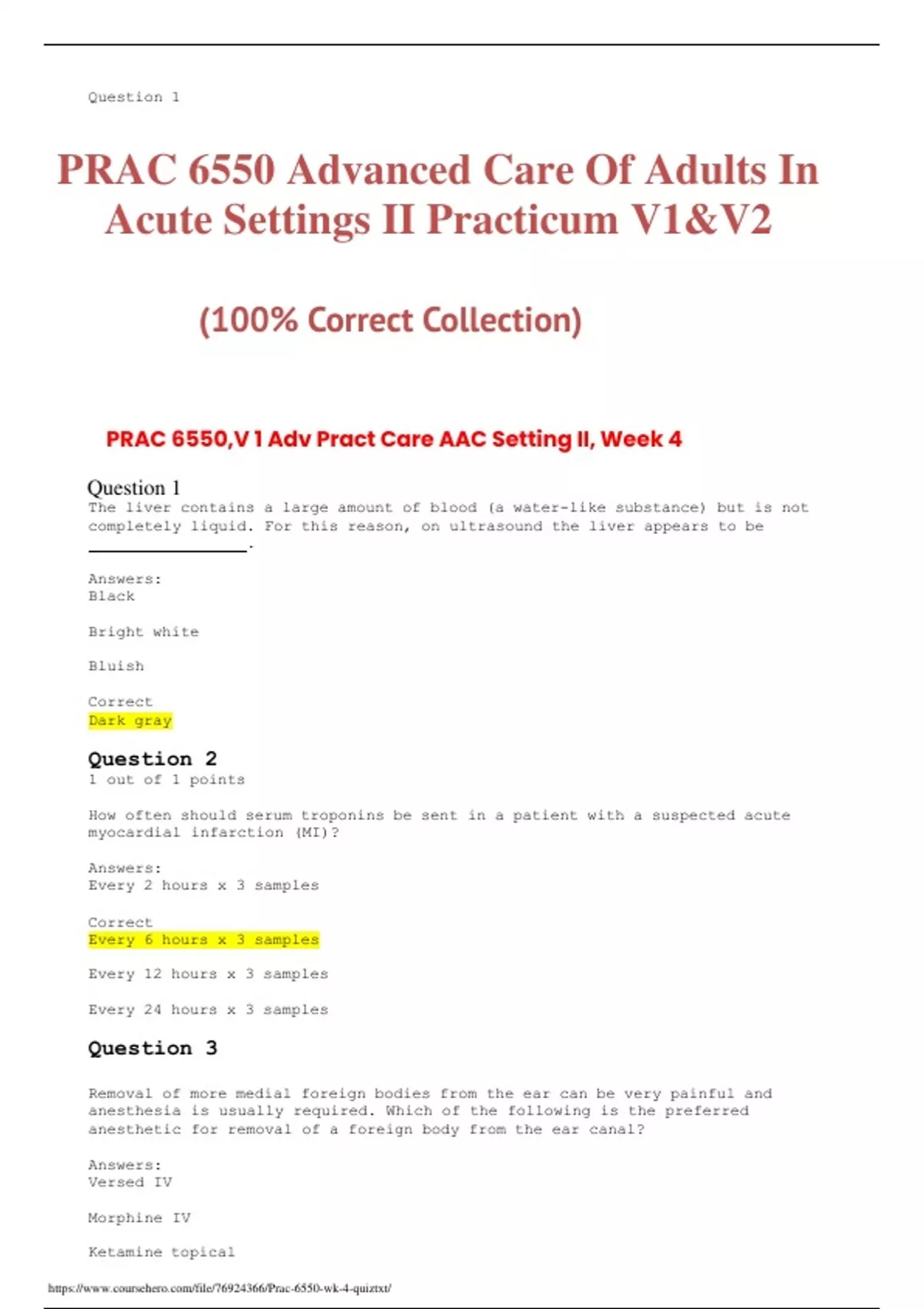 PRAC 6550 Advanced Care Of Adults In Acute Settings II Practicum V1&V2 (100% Correct Collection)PRAC 6550 Advanced Care Of Adults In Acute Settings II Practicum V1&V2 (100% Correct Collection)PRAC 6550 Advanced Care Of Adults In Acute Settings II Practicum V1&V2 (100% Correct Collection)