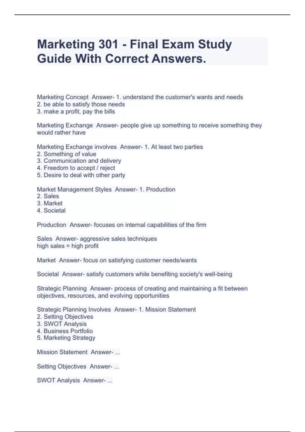 Marketing 301 - Final Exam Study Guide With Correct Answers.