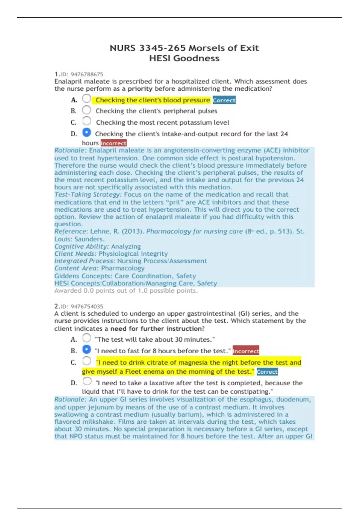 NURS 3345-265 Morsels of Exit HESI Goodness