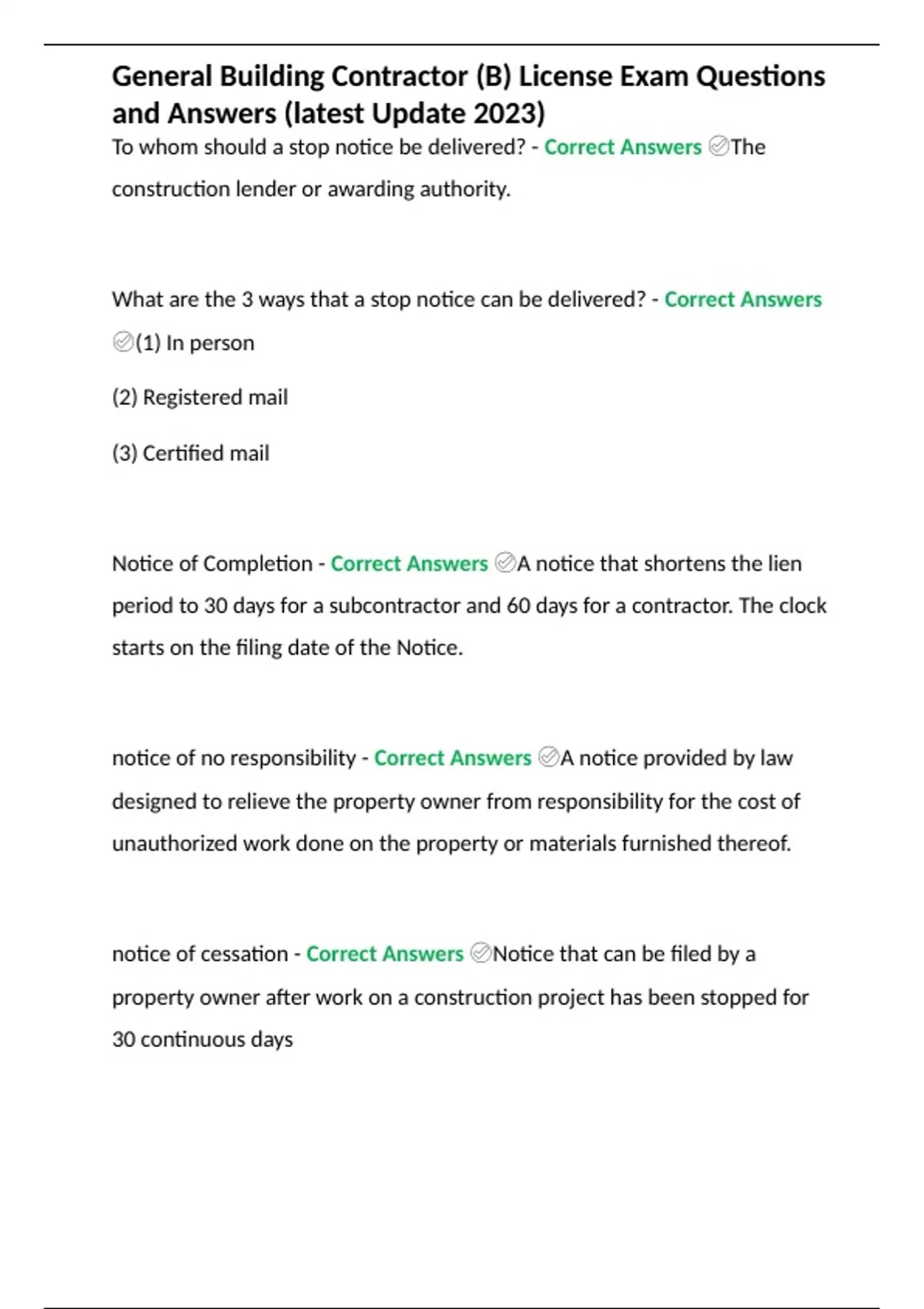 General Building Contractor (B) License Exam Questions and Answers (latest Update 2023)