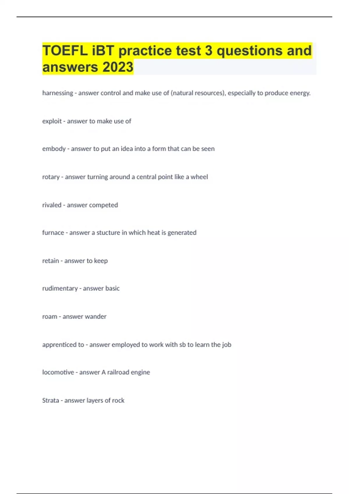 The middle of the country is nearly DESERTED. empty The classical period of music lasted from about 1760 to 1790. ... A symphony is a piece of music designed for a large group of instruments. ... Mozart first performed IN PUBLIC at age 5 for one lucky audience. in front of people Scientists believe that elements consist of atoms. Atoms are the smallest pieces of elements Elements combine to form compounds. ... The atoms of each element stick, or BOND, together. join These bonded atoms form molecules. ... In this equation, sulfur dioxide combines with water to YIELD sulfurous acid. produce It should also have medicine for bug bites, pain, and other MALADIES. health problem Baseball is different from most sports. It has no time limit. ... The longest-known baseball game lasted eight hours and six minutes. ... After three outs, the teams TRADE places. switch places A book about the life of a real person is called a biography. ... When a real person writes the story of his or her own life, it's called an autobiography. ... Geology is the study of the Earth. It is a young branch of science. ... Much has changed as our knoledge has increased. ... One thing hasn't changed - we still need the Earth to survive. ... When baby animals grow bigger, their mothers' milk DRIES UP. Also, milk only keeps for a short time. stop being produced In order to have milk-based food all year, people learn to make cheese. ... Exposure, or hypothermia, can happen when it's cold outside. Hypothermia is a serious medical condition in which your body temperature is very low In a MILD wind, hypothermia can SET IN quickly if a person is wet. Mild: warm and pleasant Set in: to take effect, to happen When affected by exposure, a person can't stop SHIVERING. They can also feel STIFF. Shiver: shake uncontrollably from cold Stiff: unable to bend or move fluidly He or she may act MIXED UP. confused Some people may PASS OUT. lose consciousness The areas at the top and bottom of the world are called poles. ... The United Nations meets to discuss worldwide problems and SETTLE disagreements between countries. solve a problem The UN is BASED IN New York. located in The UN has two main DECISION-MAKING sections. the process of deciding what to do about something, especially in an organization The leader of the UN is called the SECRETARY-GENERAL. an official in charge of a large organization such as the United Nations After the radio was invented, people began thinking of a way to transmit pictures, as well as sound, through the air. TV AIRED old movies like theaters showed. show on TV The sun sends out a very large amount of light. We can see these colors through a prism. A prism is a specially shaped piece of glass. The light is BENT a little passing through the prism. not straight, curved Record it on a tape and time it. ... Try VARYING the tone of your voice and the speed of your speaking. alter Air is heated when it touches the warm earth. ... It is then replaced by colder air that FLOWS under it. move smoothly like water We call this CIRCULATING movement of warm air and cold air "CONVECTION" Circulating: moving around in a cycle Convection: the process by which the very small parts in a liquid or gas move and give out heat Convection causes winds and BREEZES. a light wind Dark land absorbs more heat than light land. ... Territories are areas of land that depend on nations for economic support. ... Scientists think people were keeping these dogs as pets. ... At first, people TAMED wild dogs. take out of the wild and make obey people We call the dogs that came from those dogs, "DOMESTICATED" dogs. make gentle, tame Legend has it the city was founded on April 21, 753 BC. ... A guitar has strings that make sounds when you PLUCK them. The strings are stretched across a per-shaped bos. take hold of with the fingers, pull, and then release