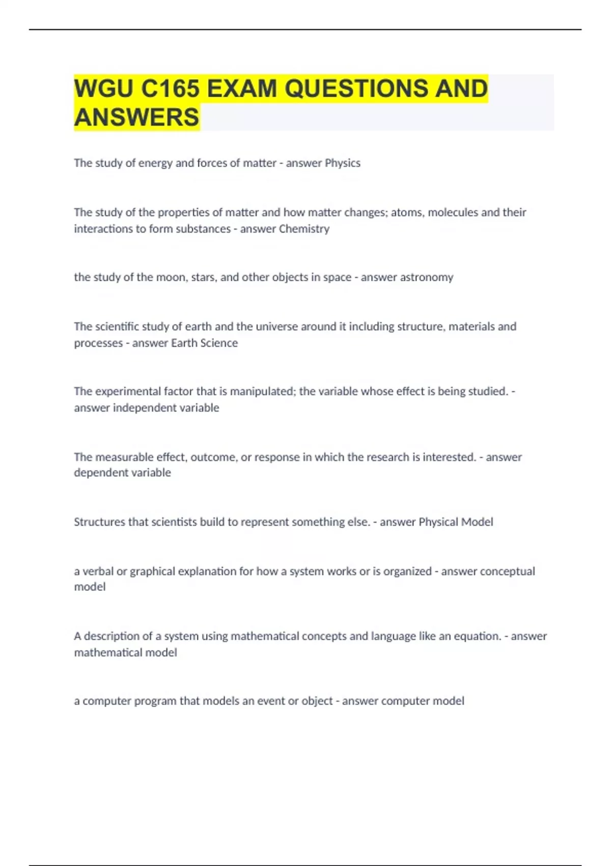 WGU C165 EXAM QUESTIONS AND ANSWERS