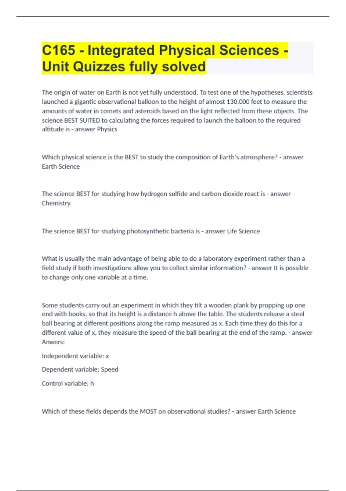 C165 - Integrated Physical Sciences - Unit Quizzes fully solved