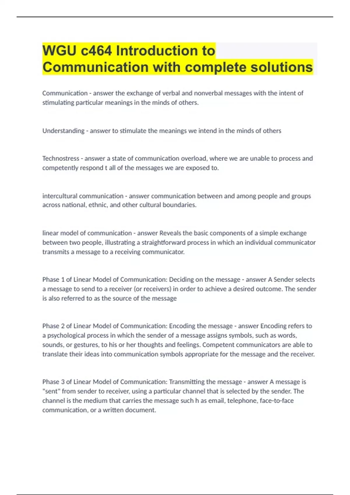 WGU c464 Introduction to Communication with complete solutions