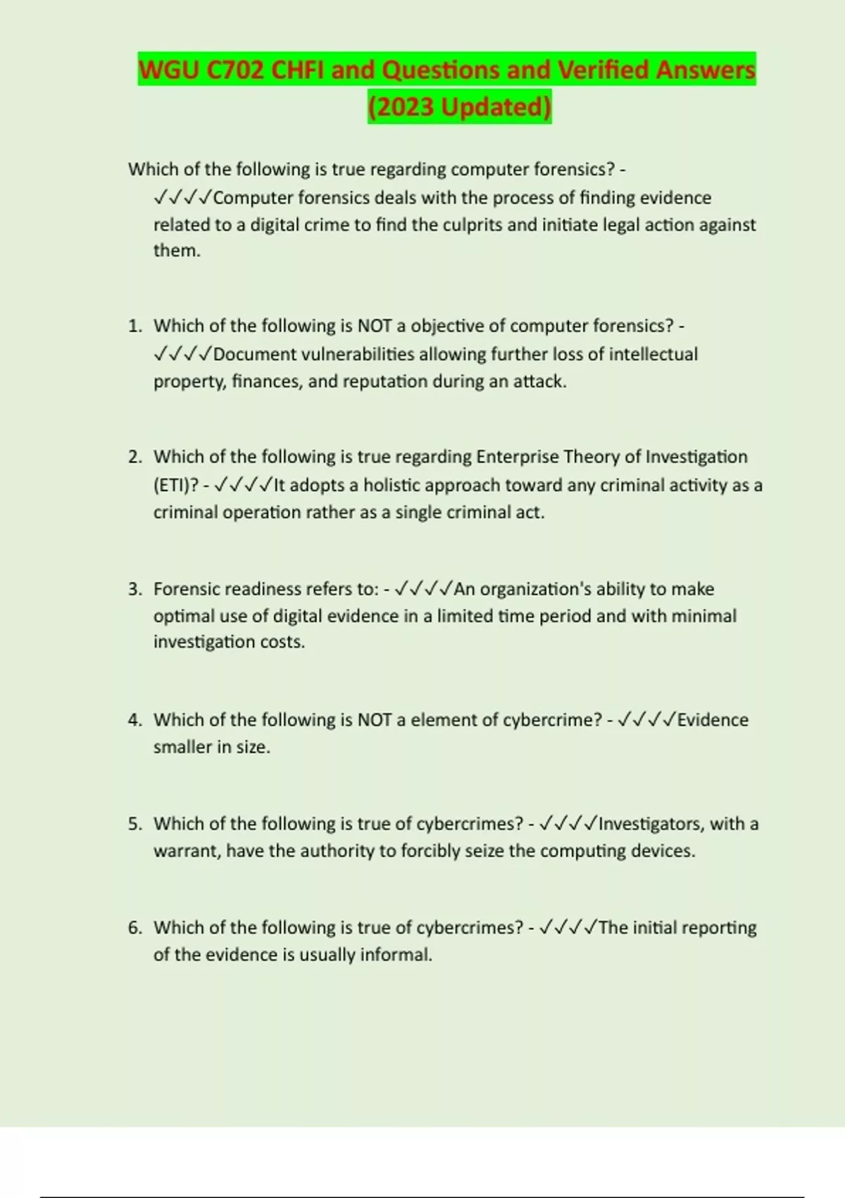 WGU C702 CHFI and Questions and Verified Answers (2023 Updated