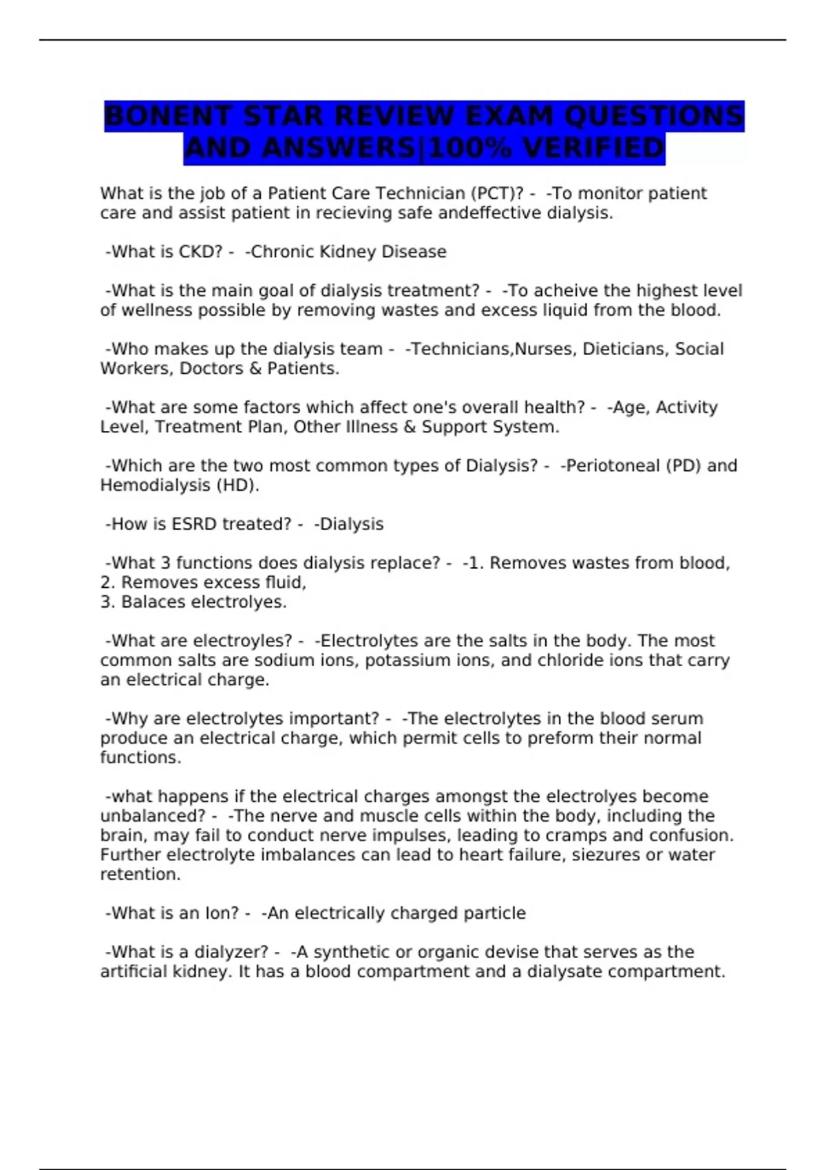 BONENT STAR REVIEW EXAM QUESTIONS AND ANSWERS|100% VERIFIED