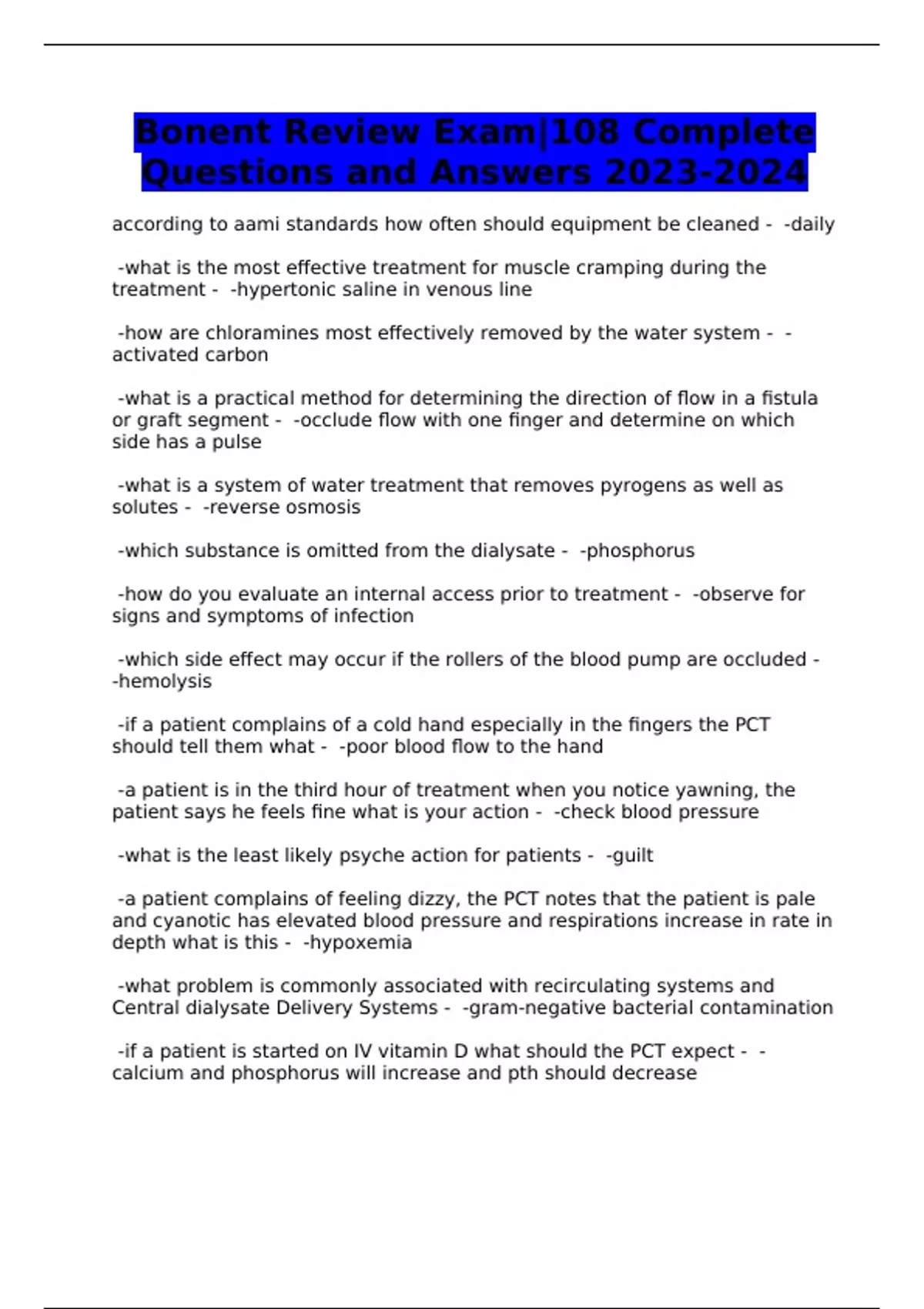 Bonent Review Exam|108 Complete Questions and Answers