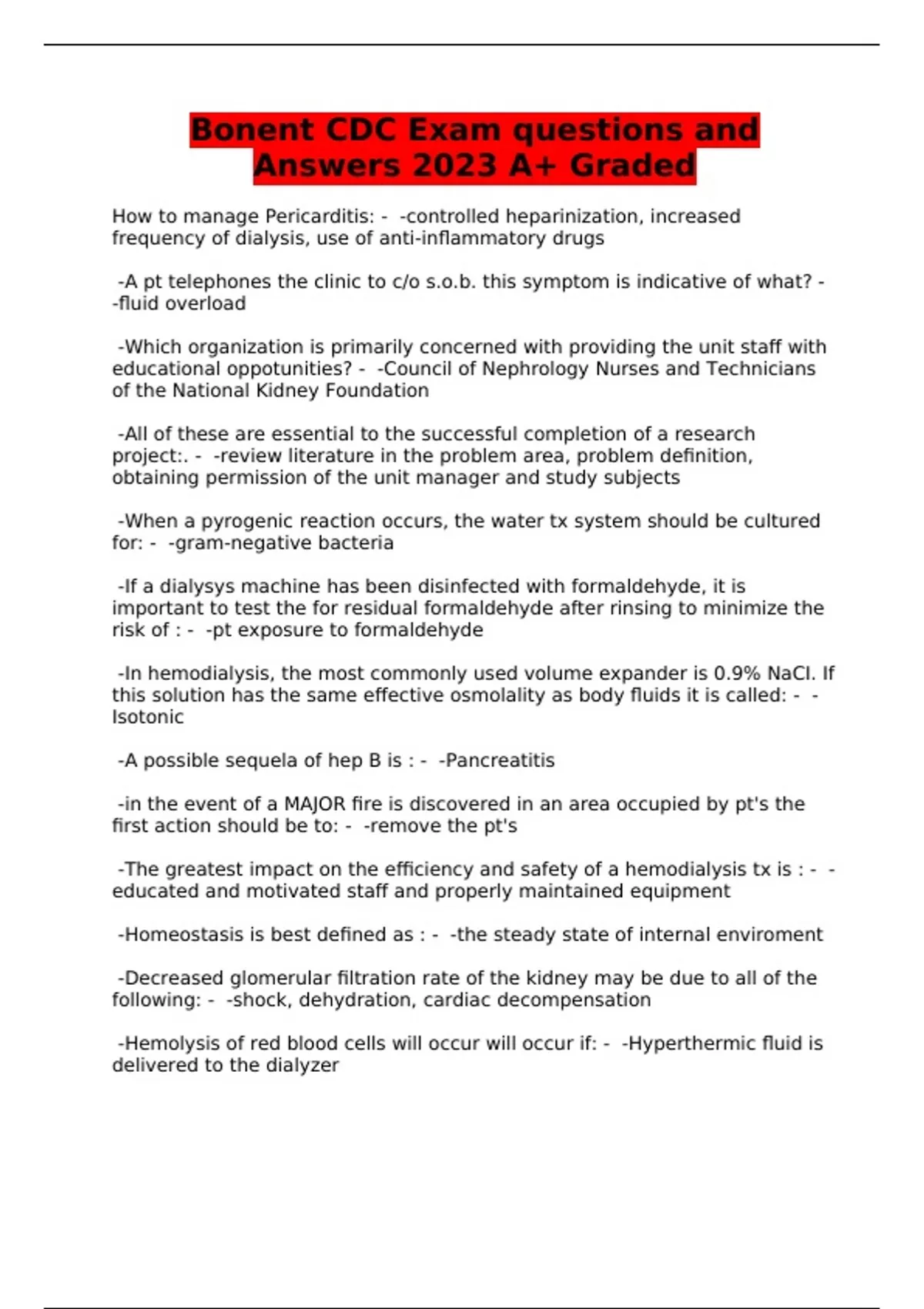 Bonent CDC Exam questions and Answers 2023 A+ Graded