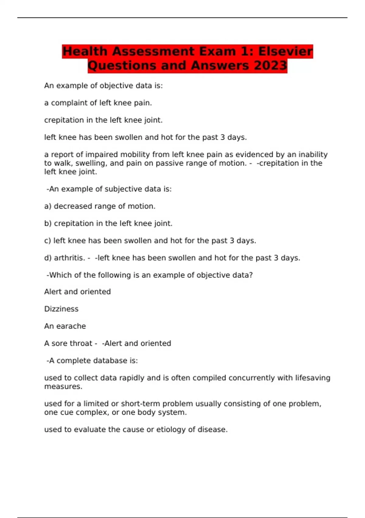 Health Assessment Exam 1: Elsevier Questions and Answers 2023