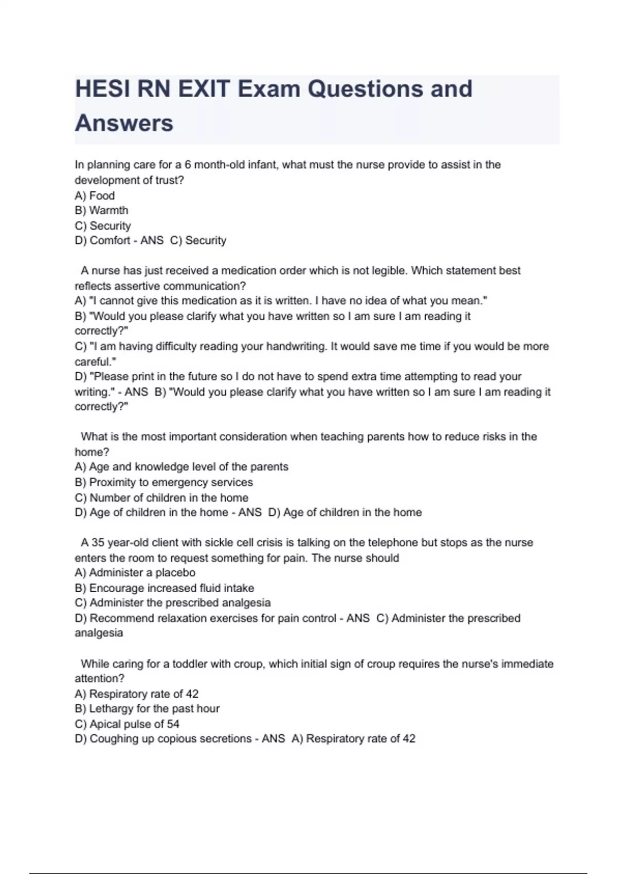 HESI RN EXIT Exam Questions and Answers; A+ Rated Guide (2023)
