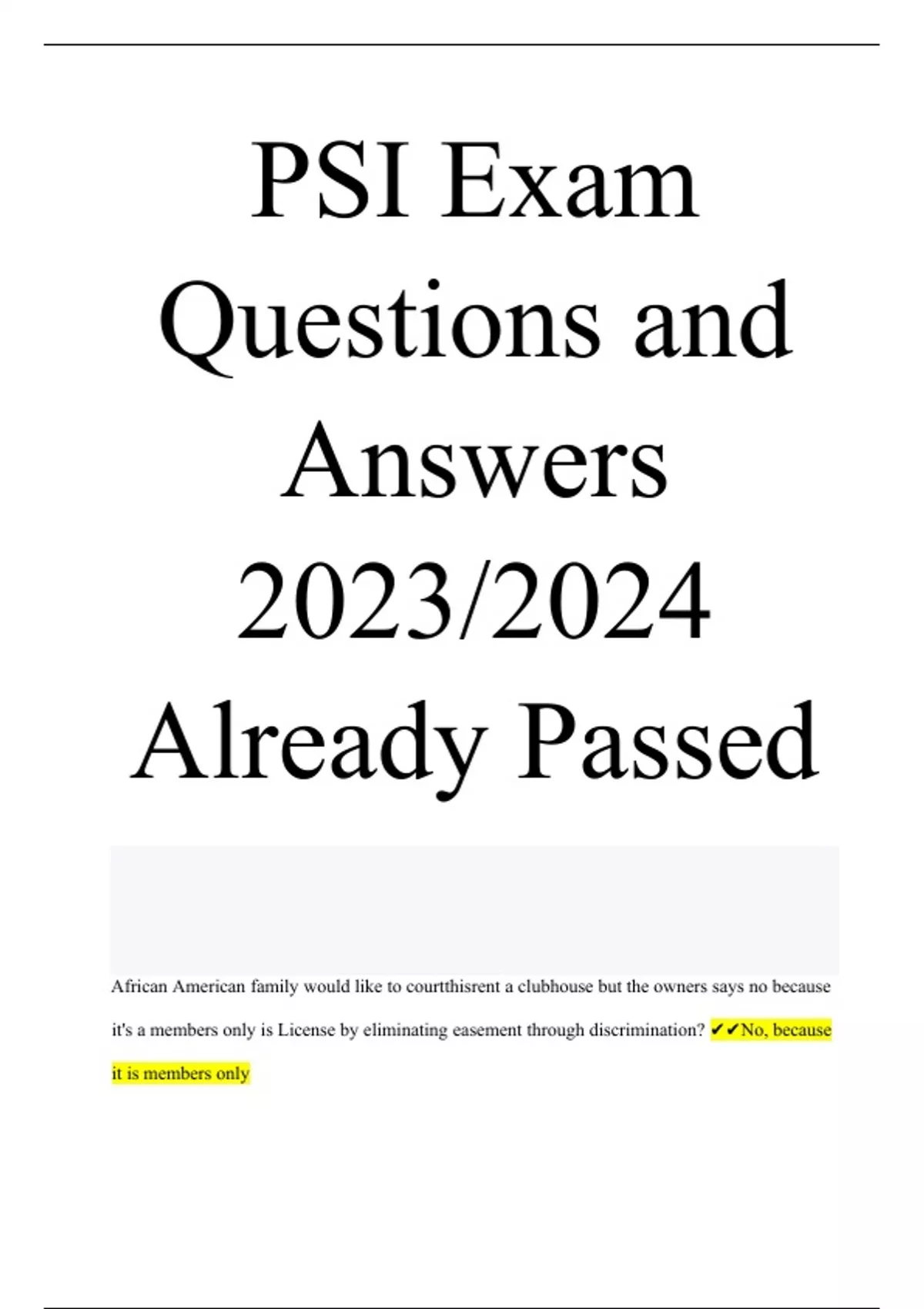 PSI Exam Questions and Answers 2023/2024 Already Passed