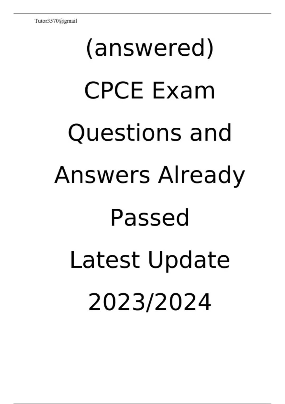 (answered) CPCE Exam Questions and Answers Already Passed Latest Update 2023/2024
