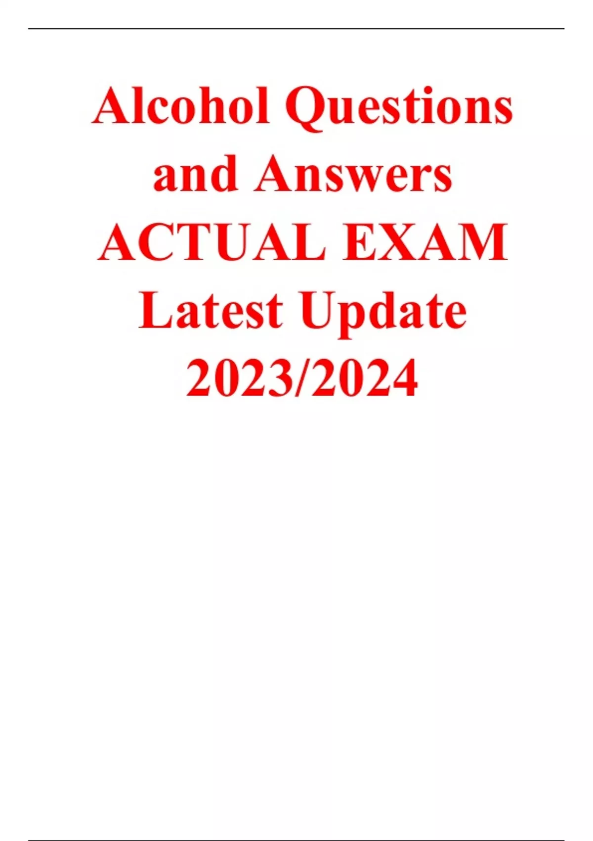 Alcohol Questions and Answers ACTUAL EXAM Latest Update 2023/2024