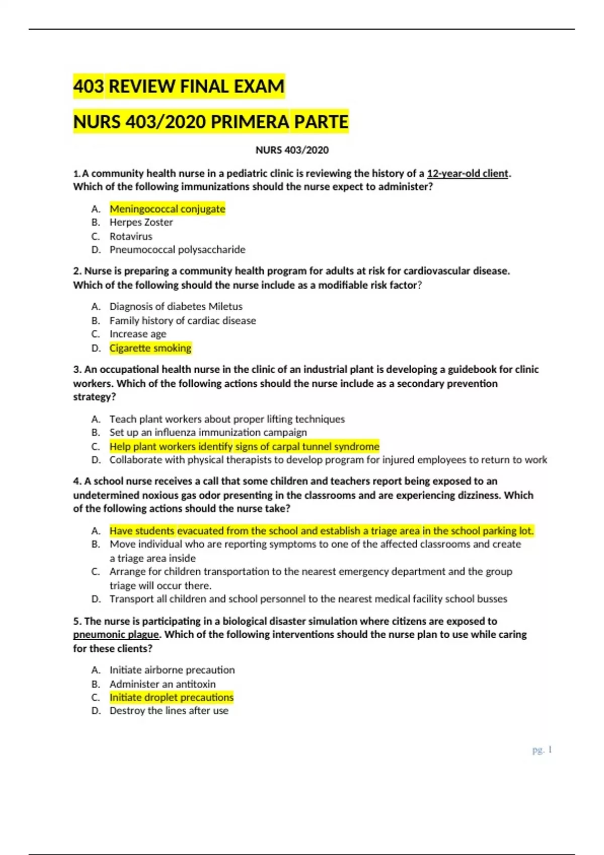 403 REVIEW FINAL EXAM NURS 403/2020 PRIMERA PARTE