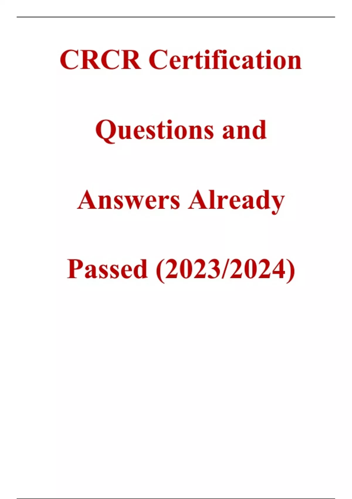 CRCR Certification Questions and Answers Already Passed (2023/2024)