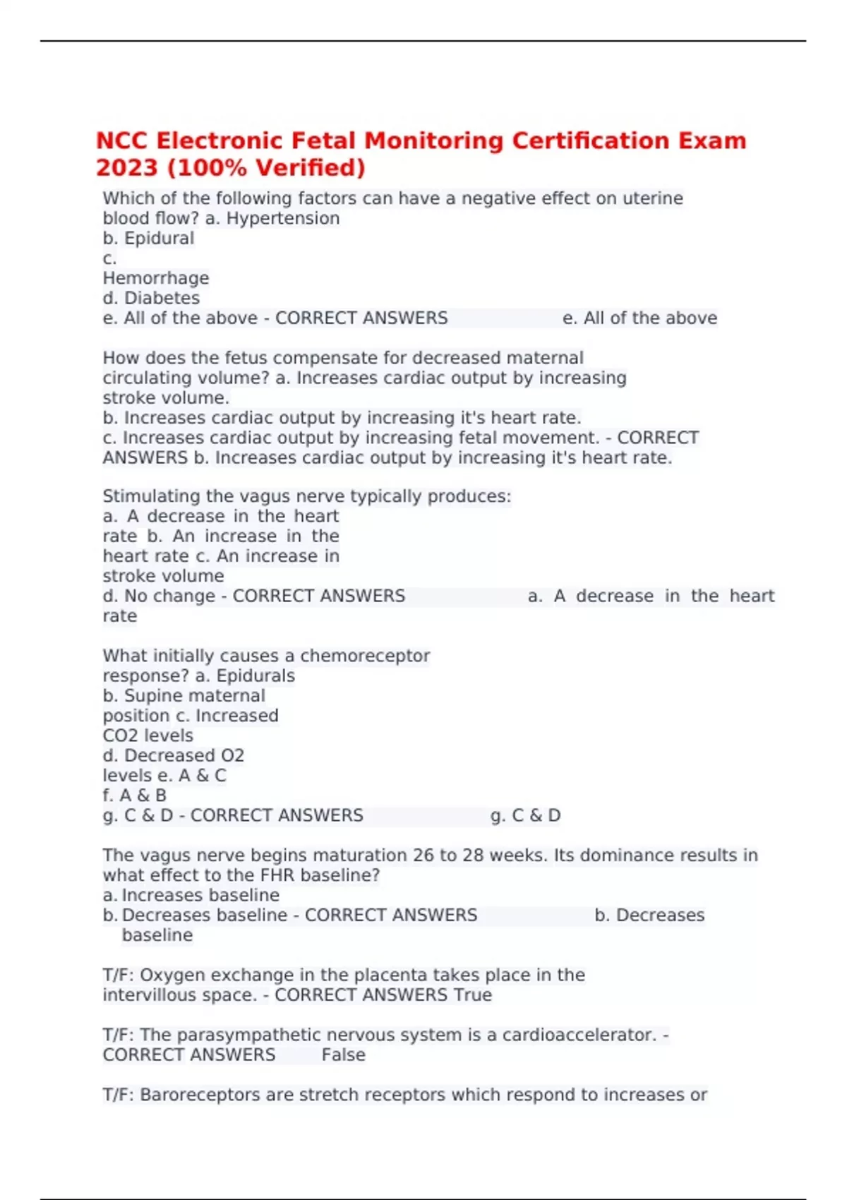 NCC Electronic Fetal Monitoring Certification Exam 2023 (100% Verified)