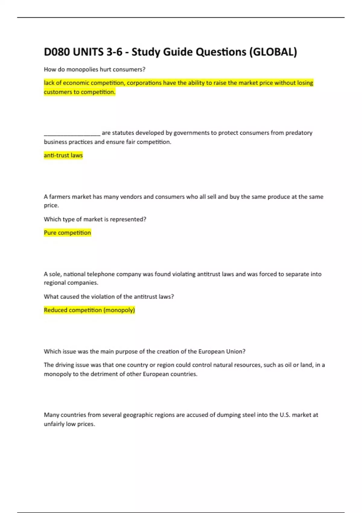 D080 UNITS 3-6 - Study Guide Questions (GLOBAL) Score A+