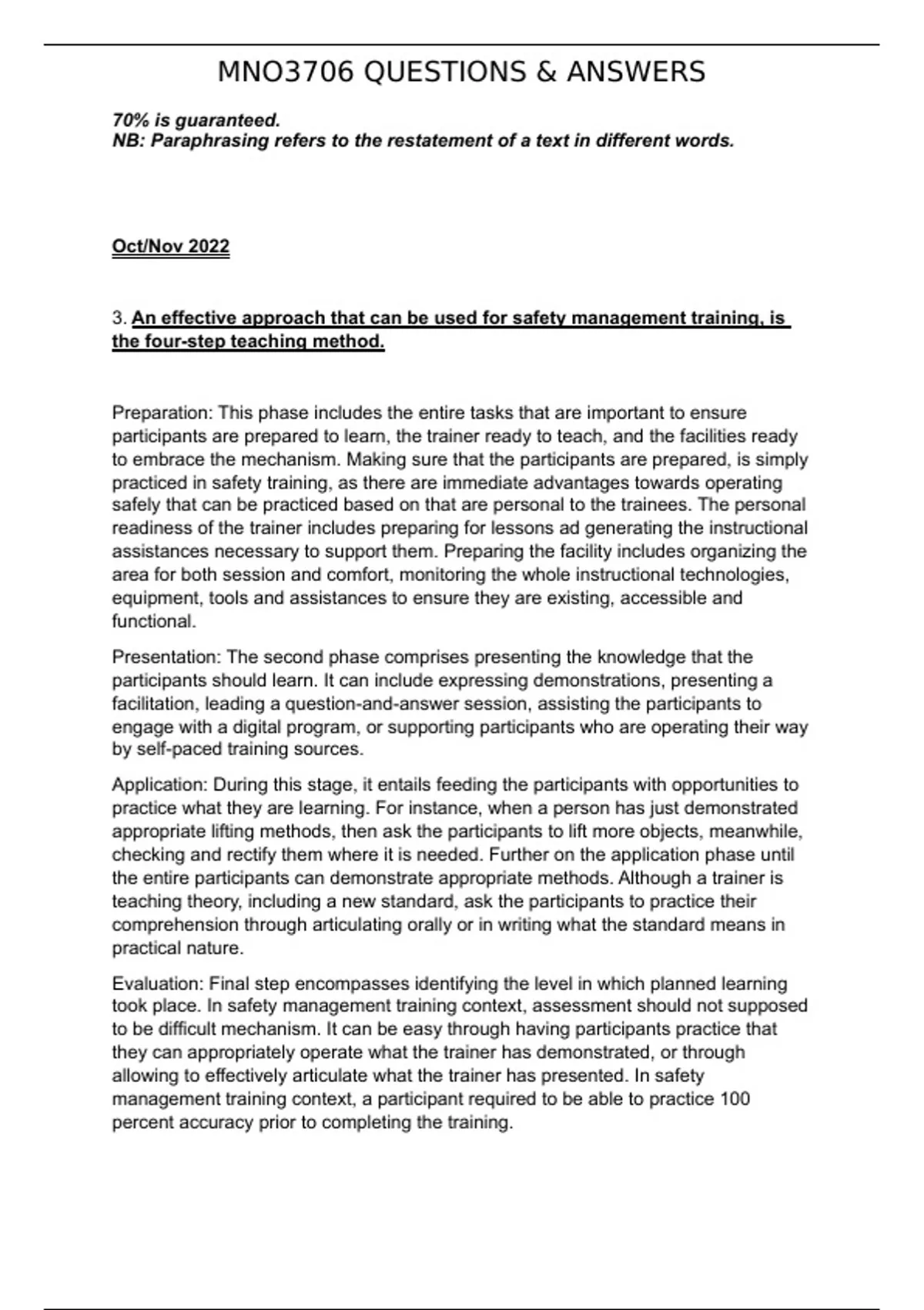 MNO3706 QUESTIONS & ANSWERS