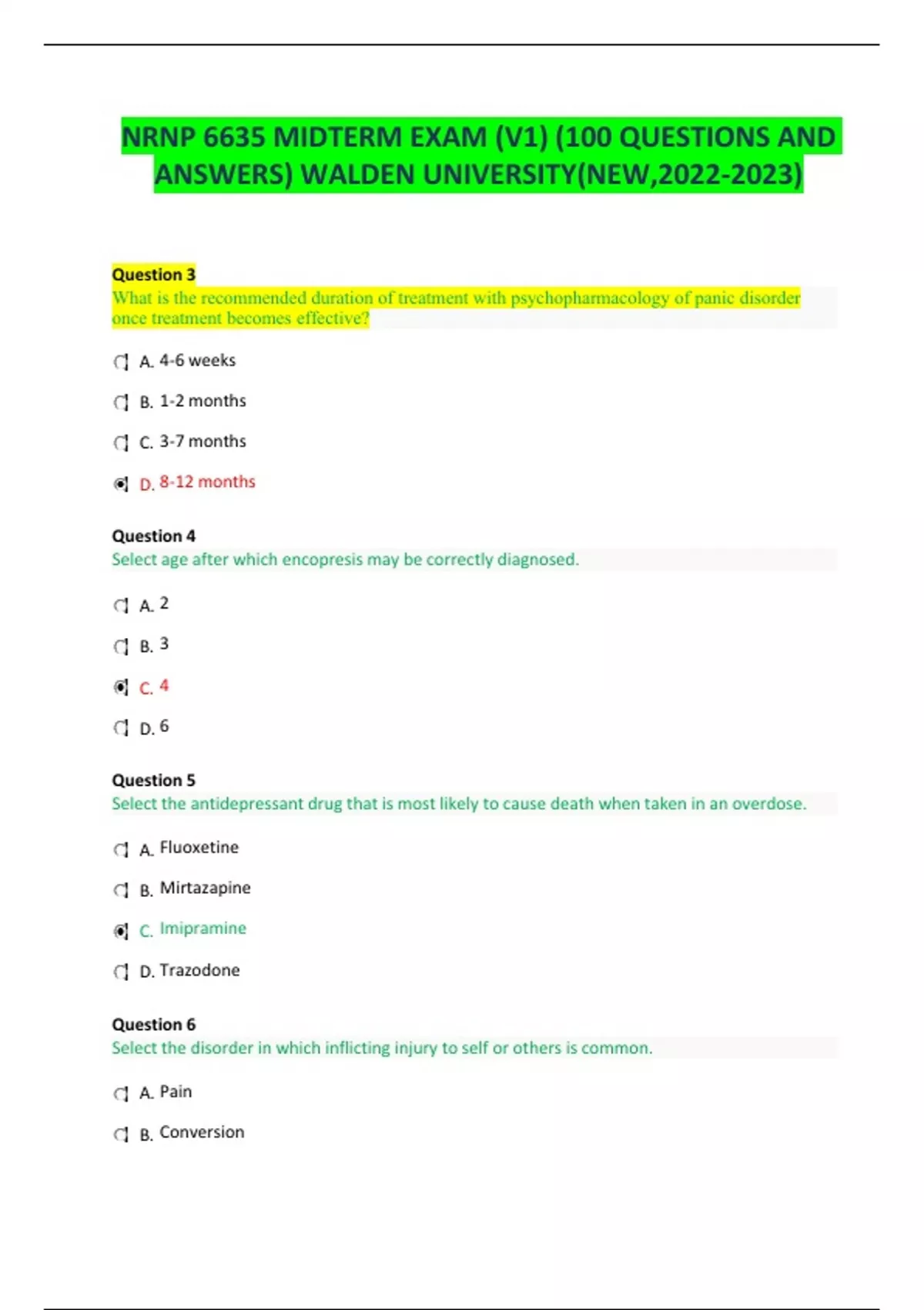 NRNP 6635 MIDTERM EXAM (V1) (100 QUESTIONS AND ANSWERS) WALDEN UNIVERSITY(NEW,)