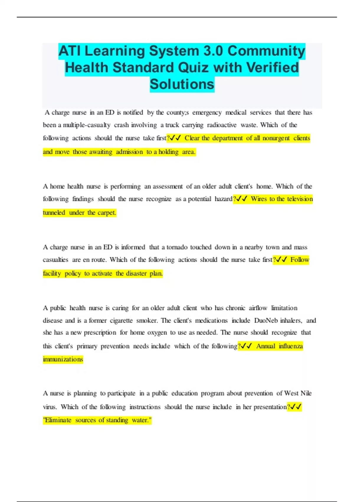 ATI Learning System 3.0 Community Health Standard Quiz with Verified Solutions