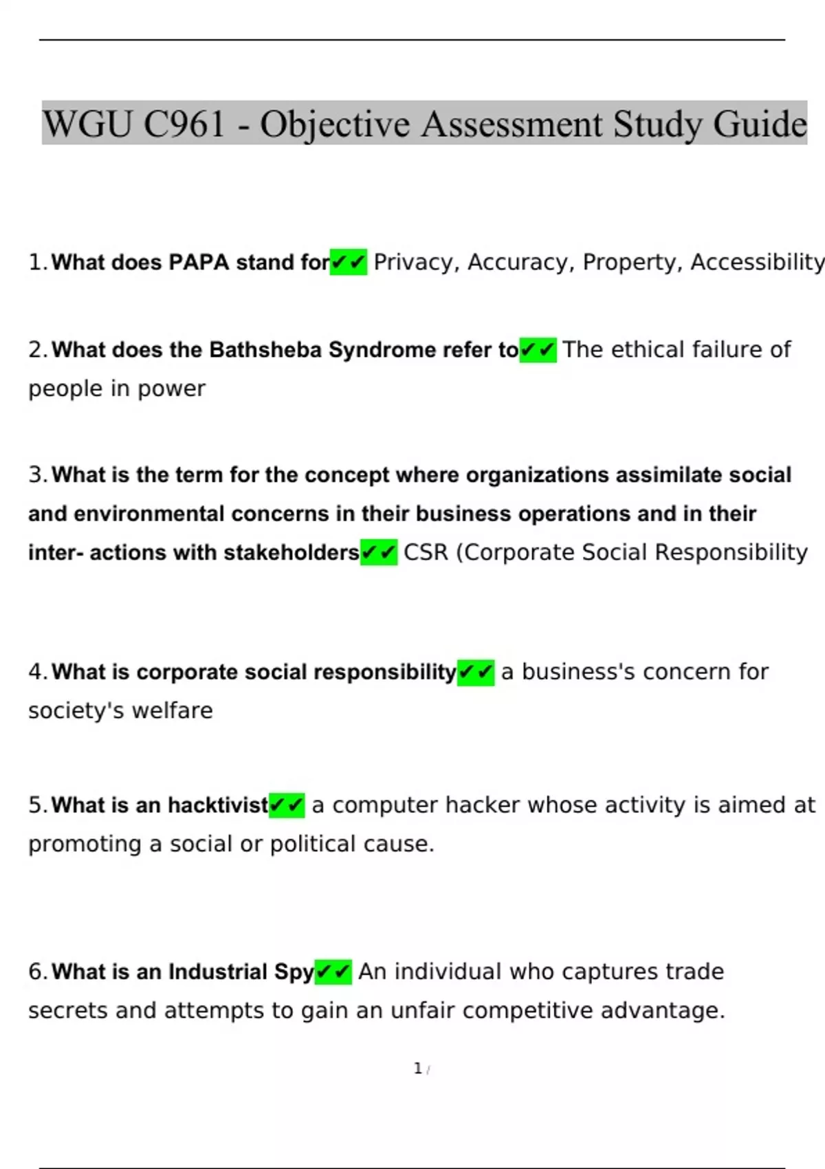 WGU C961 Ethics In Technology Objective Assessment Study Guide Questions and Answers