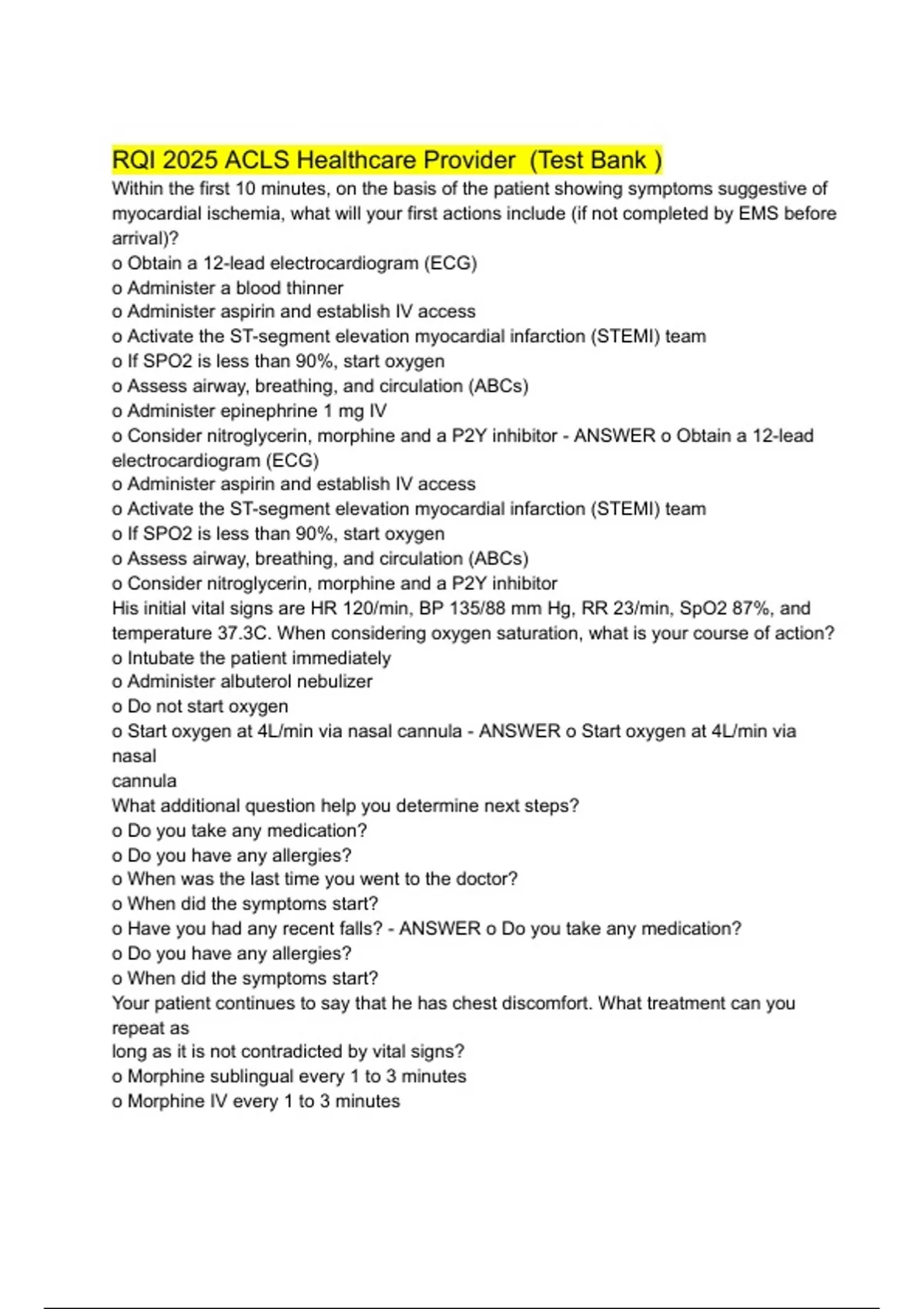RQI 2025 ACLS Healthcare Provider (Test Bank ) Exam ||Professionally Answered Exam||100% Verified Answers