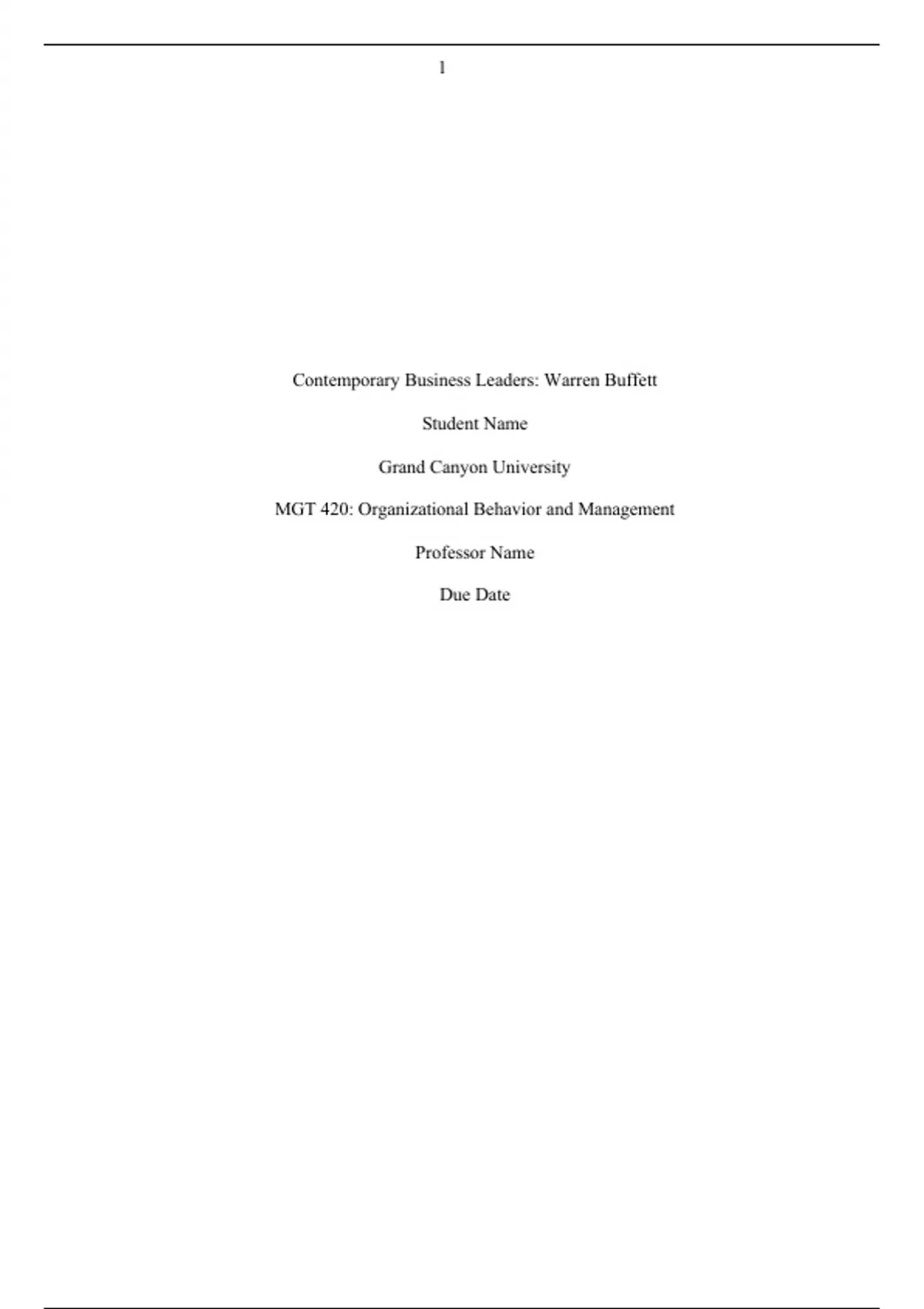MGT 420 Topic 6 Assignment; CLC - Contemporary Business Leaders ONLINE - Warren Buffett