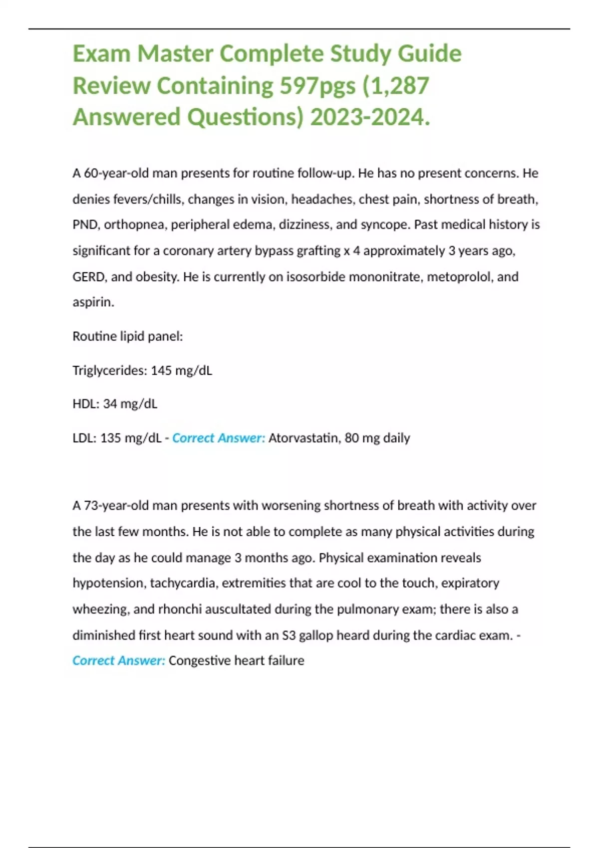 Exam Master Complete Study Guide Review Containing 597pgs (1,287 Answered Questions) .