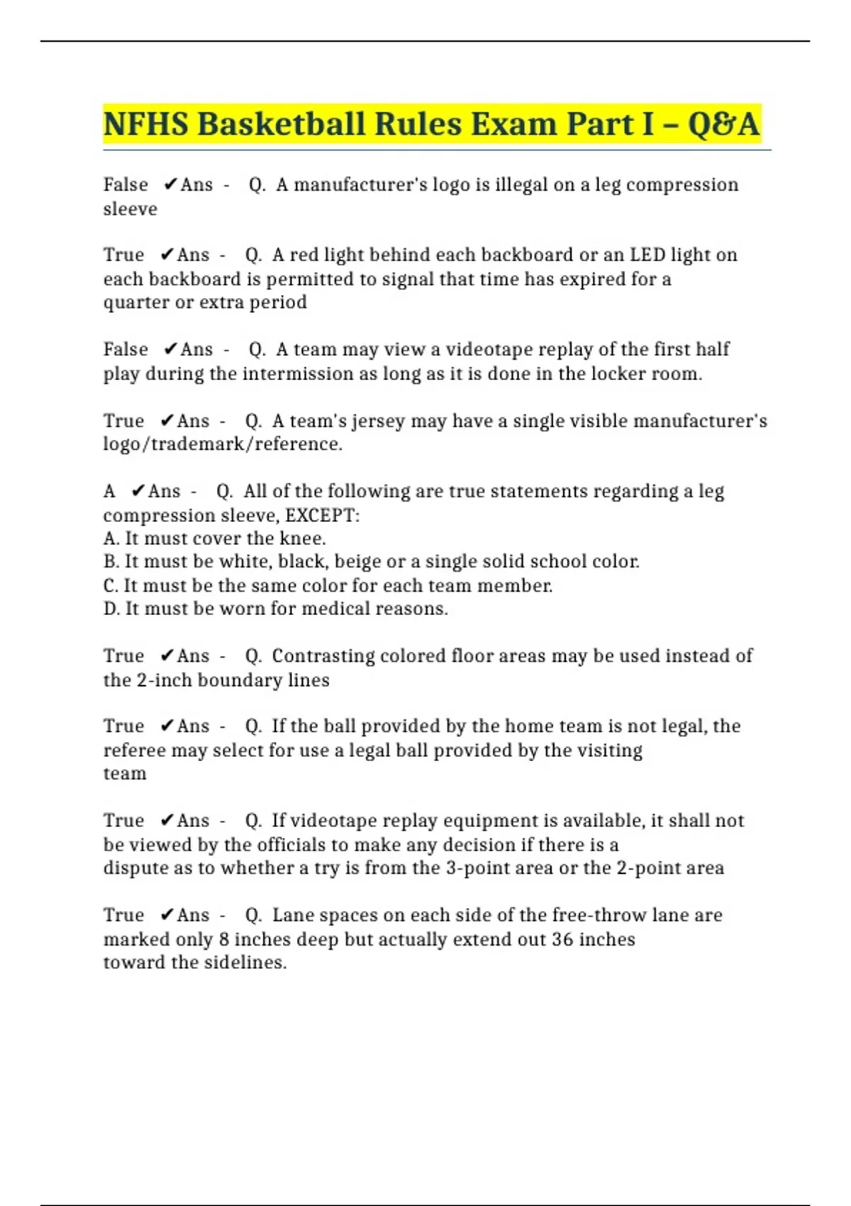 NFHS Basketball Rules Exam Part I – Q&A