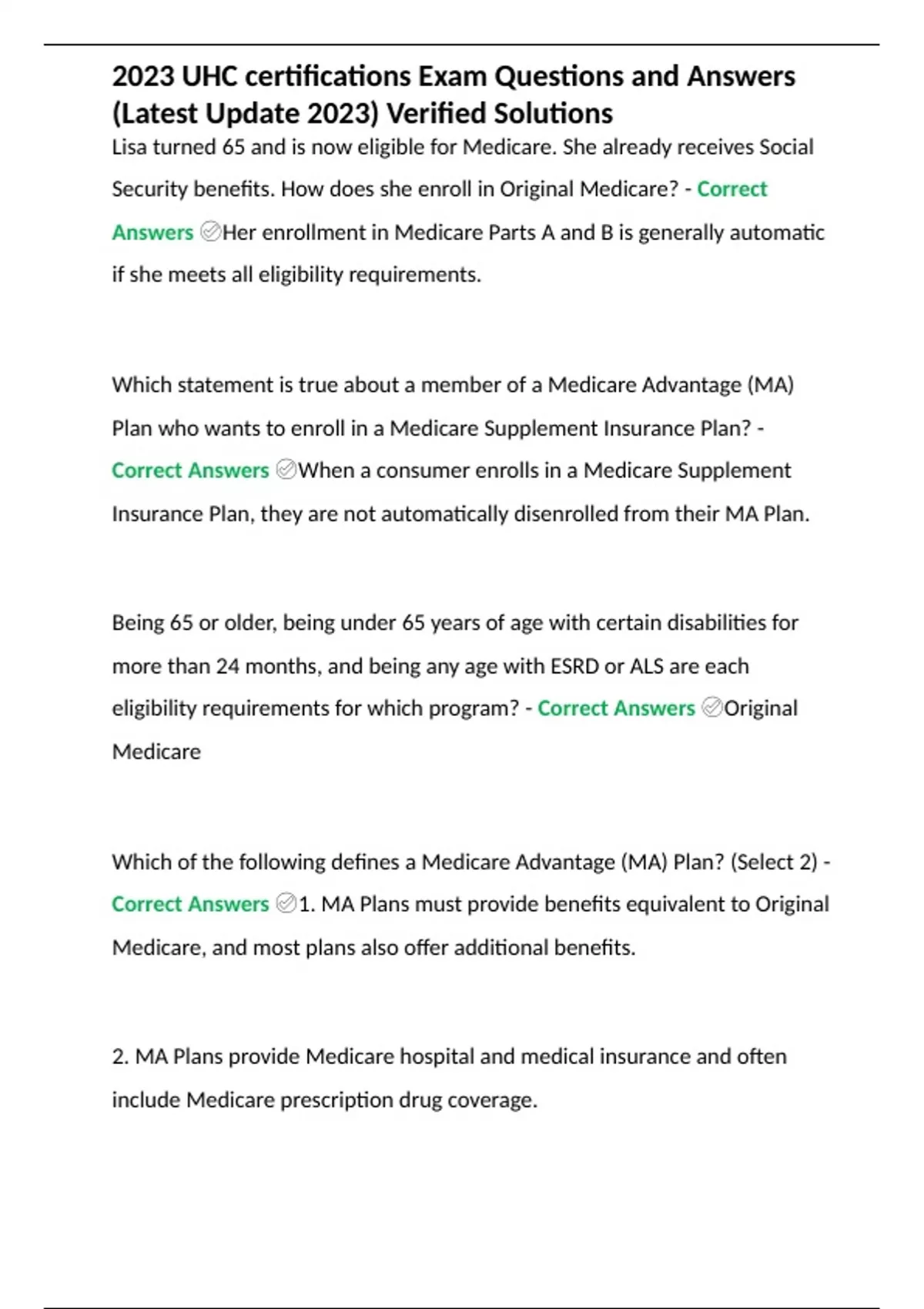 2023 UHC certifications Exam Questions and Answers (Latest Update 2023) Verified Solutions