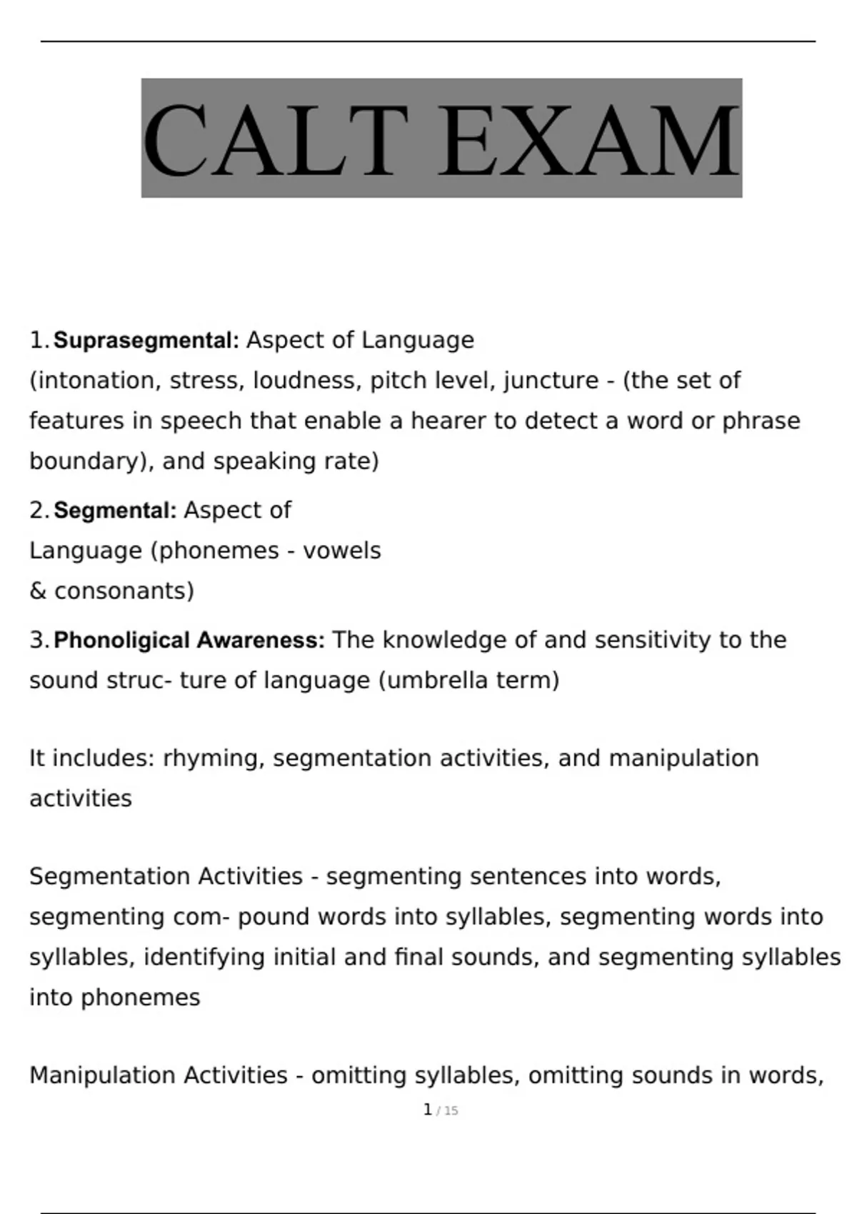 CALT EXAM Questions and Answers Latest,100% CORRECT